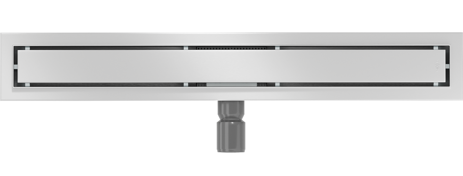 The linear drain is mounted at a depth of only 52 mm. The low depth allows for easier surface preparation for the drain installation and easy leveling, ensuring high aesthetics and effective water drainage.