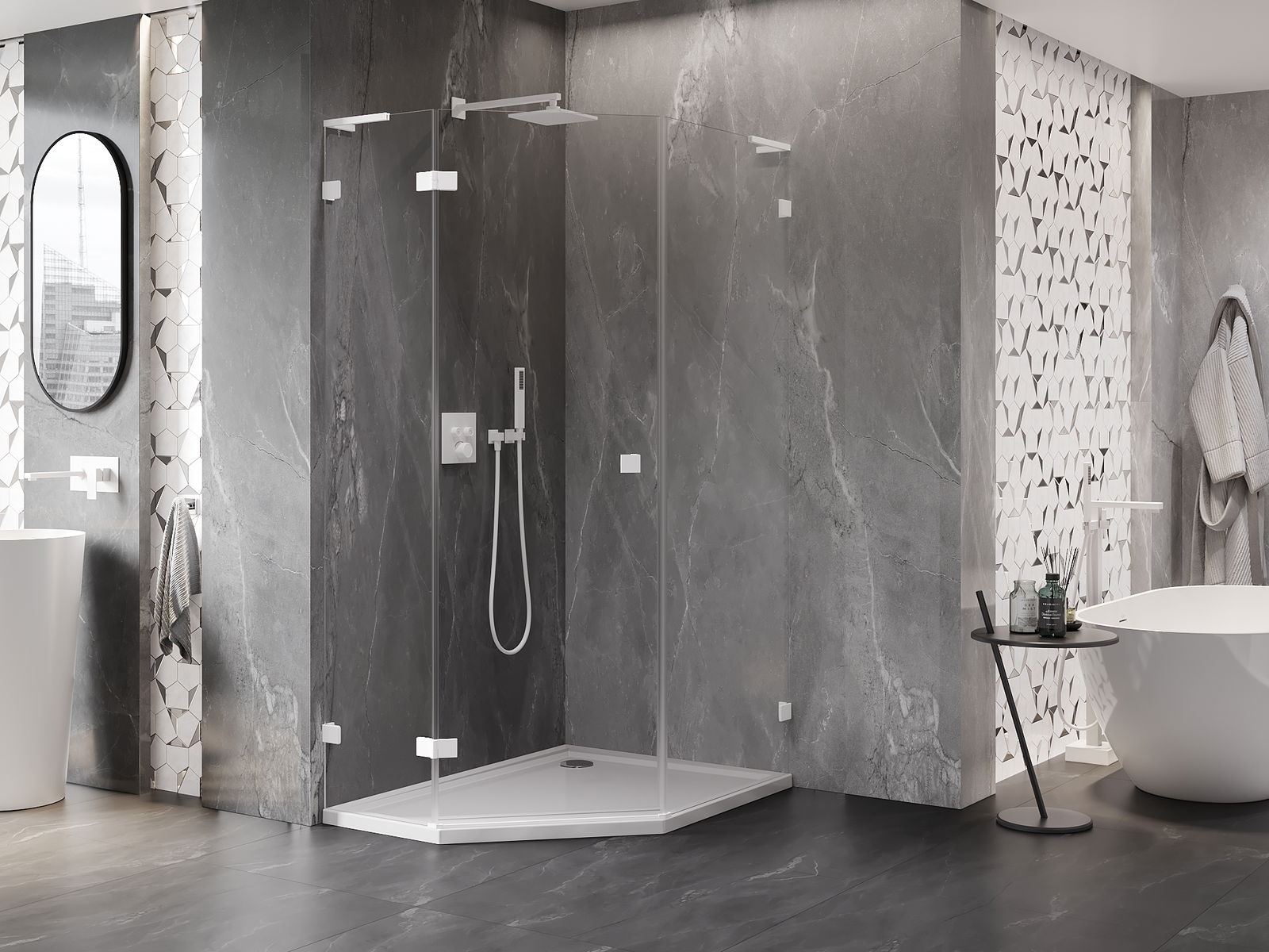 A handy and comfortable handle made from durable and resistant metal. Its trendy shape combined with a finish matched to the colour of the profiles gives the whole a modern and stylish look, highlighting the aesthetics of every bathroom.
