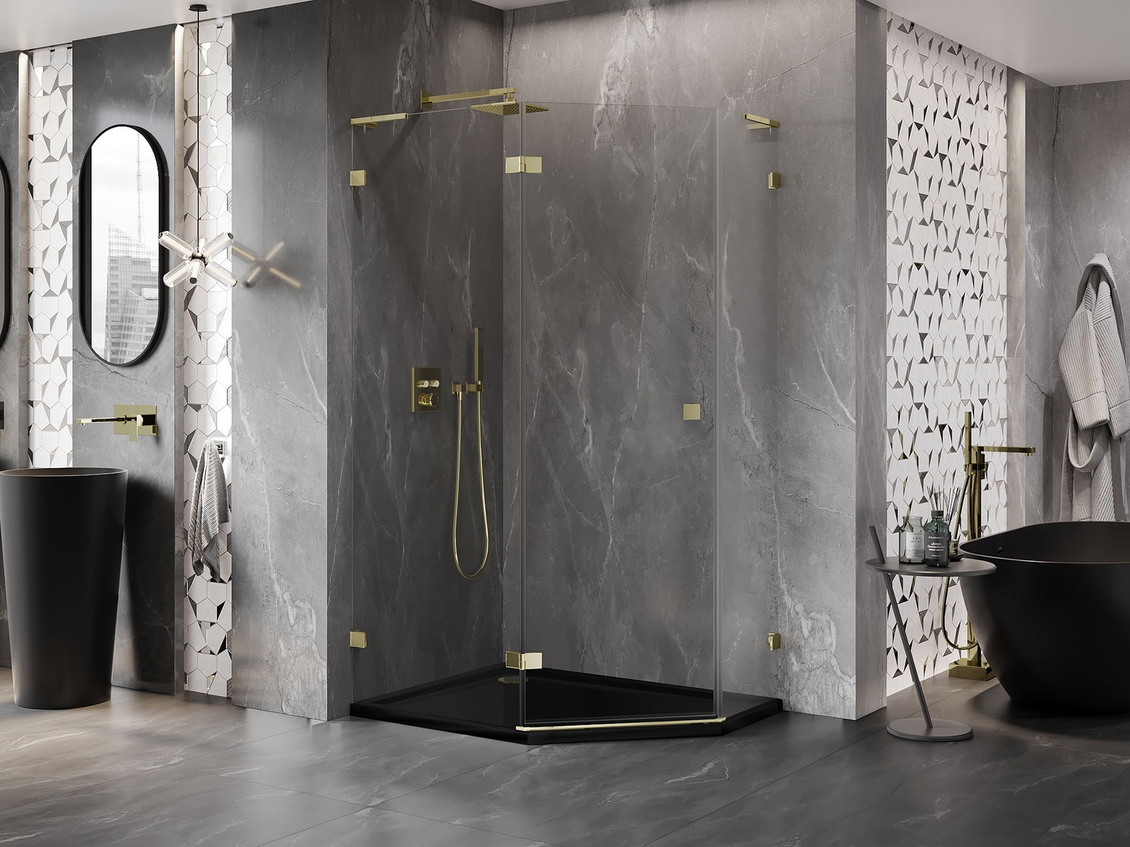 Mexen Lunar L pentagonal shower enclosure, left hinge 100 x 90 cm, transparent, gold - 831L-100L-090P-50-00-L