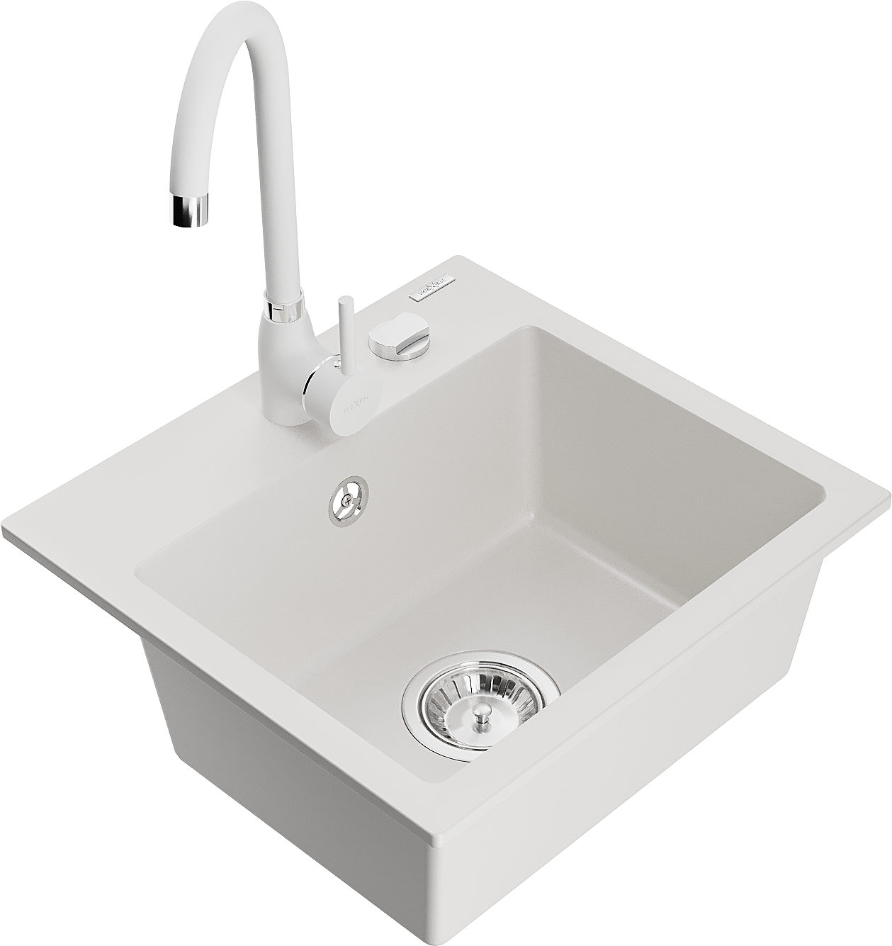 Mexen Milo 1-bowl granite sink with Telma kitchen tap, white - 6505-20-670200-20
