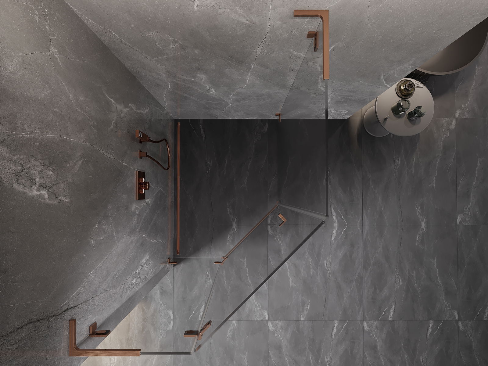 Mexen Lunar L pentagonal left hinged shower enclosure 80 x 100 cm, transparent, brushed copper - 831L-080L-100P-65-00-L