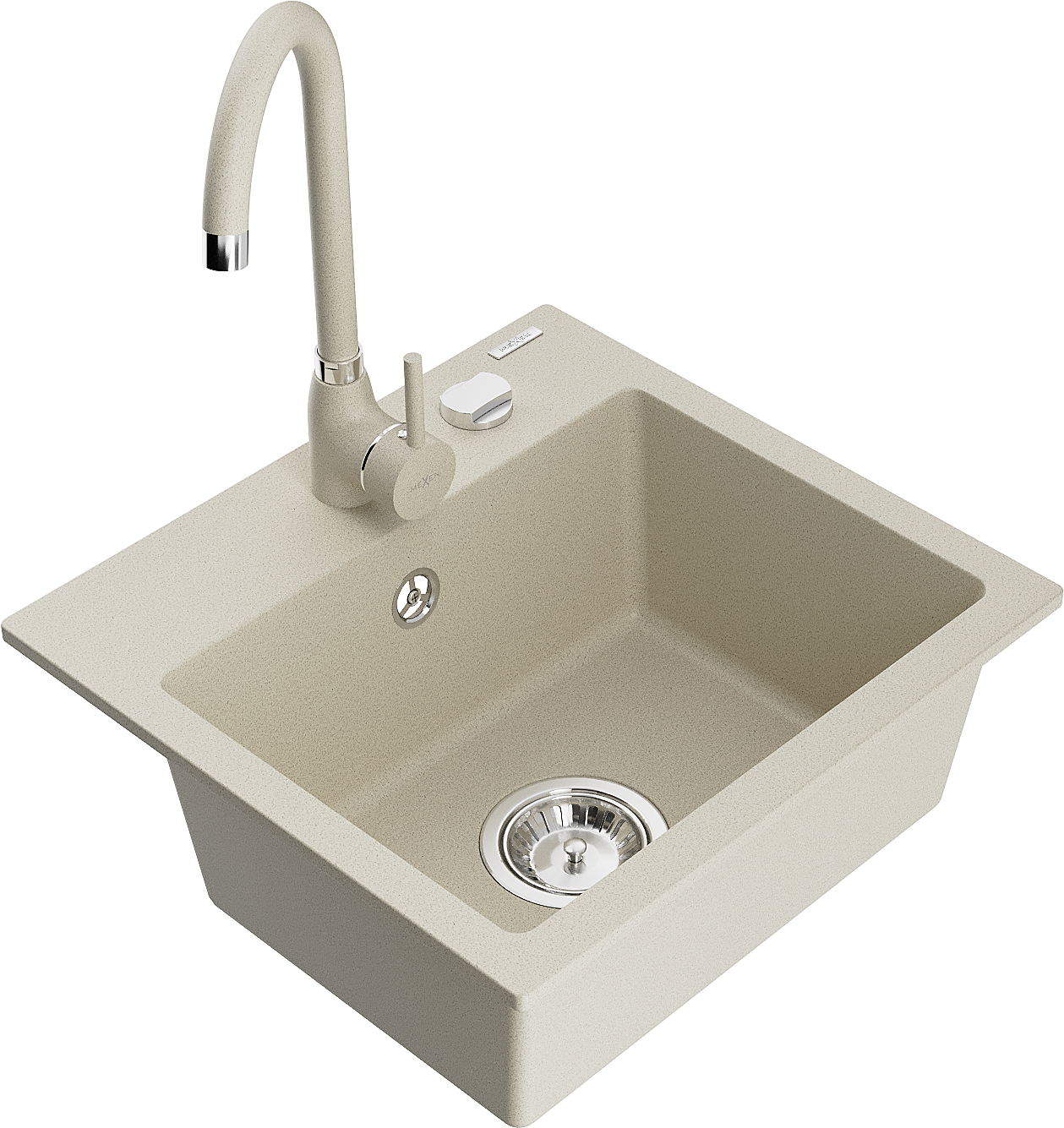 Mexen Milo granite sink 1-bowl with Telma kitchen mixer tap, beige - 6505-69-670200-69