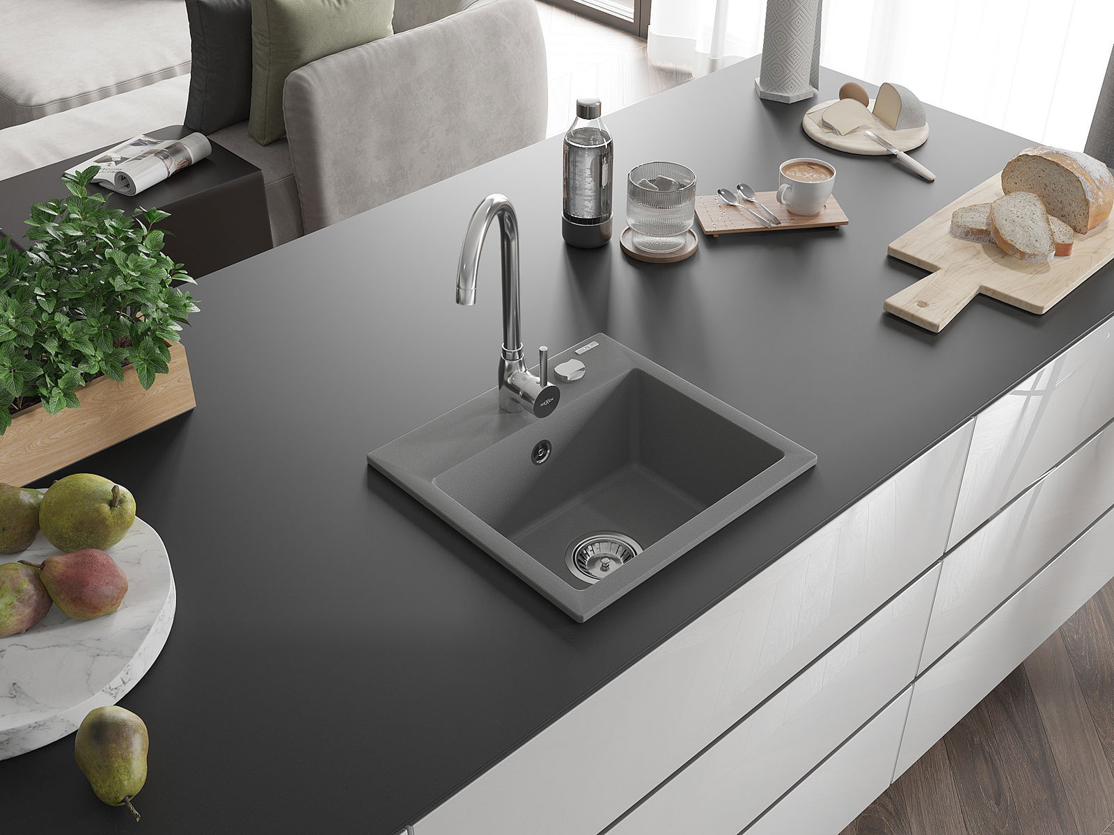The surface of the sink is resistant to stains and discoloration, thanks to which it is easy to clean and retains its color for a long time. Aesthetic and practically complementing every kitchen.