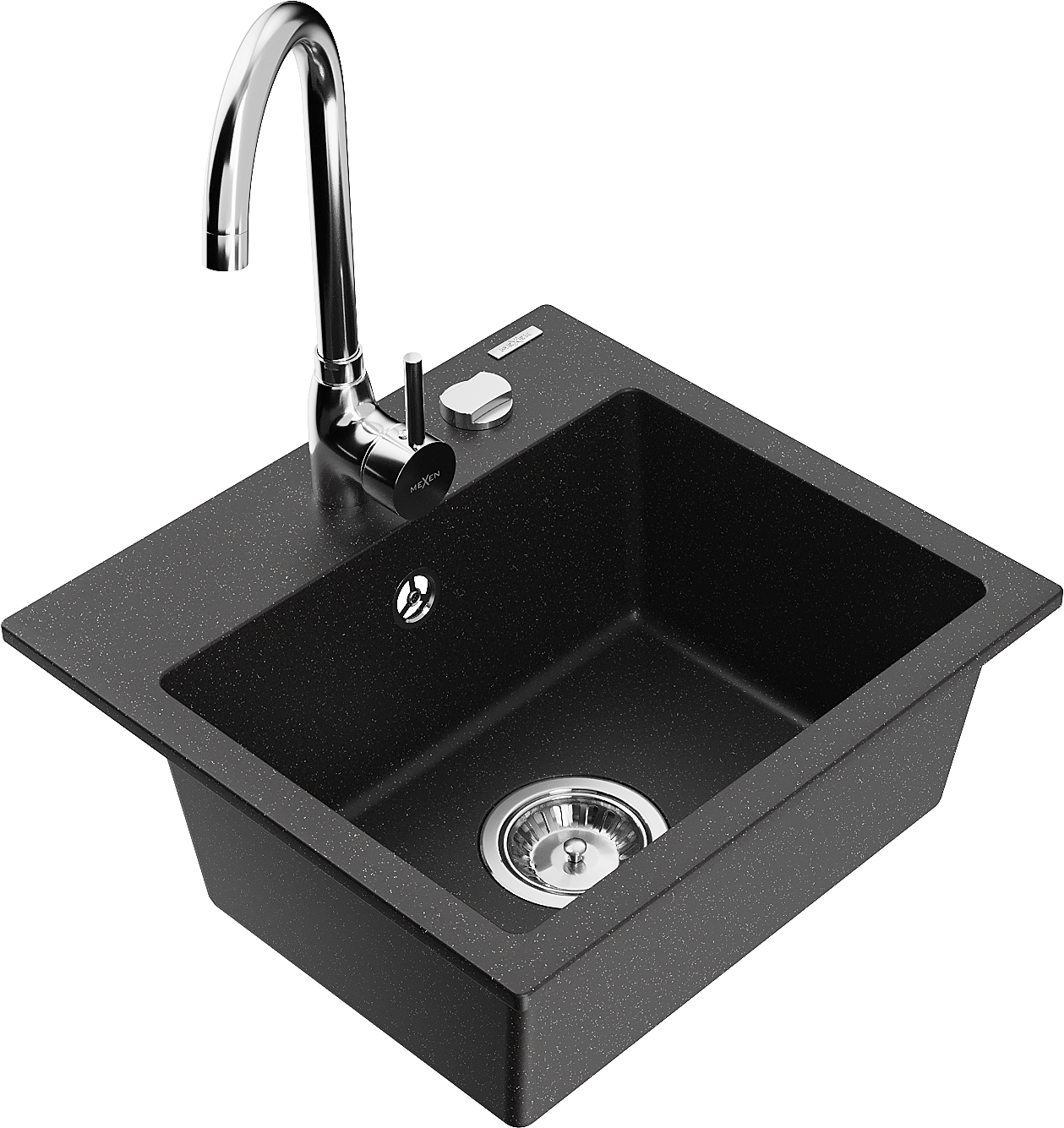 Mexen Milo granite kitchen sink 1-bowl with Telma kitchen tap, black/silver - 6505-73-670200-00