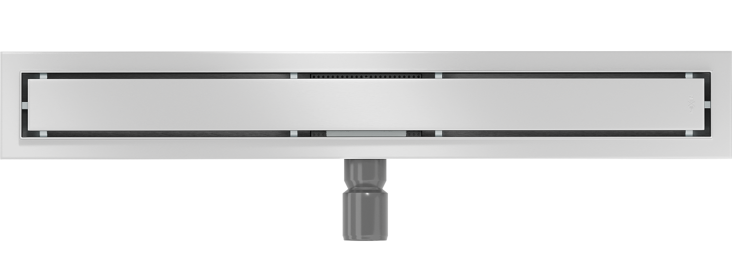 The linear drain is mounted at a depth of only 52 mm. The low depth allows for easier surface preparation for the drain installation and easy leveling, ensuring high aesthetics and effective water drainage.