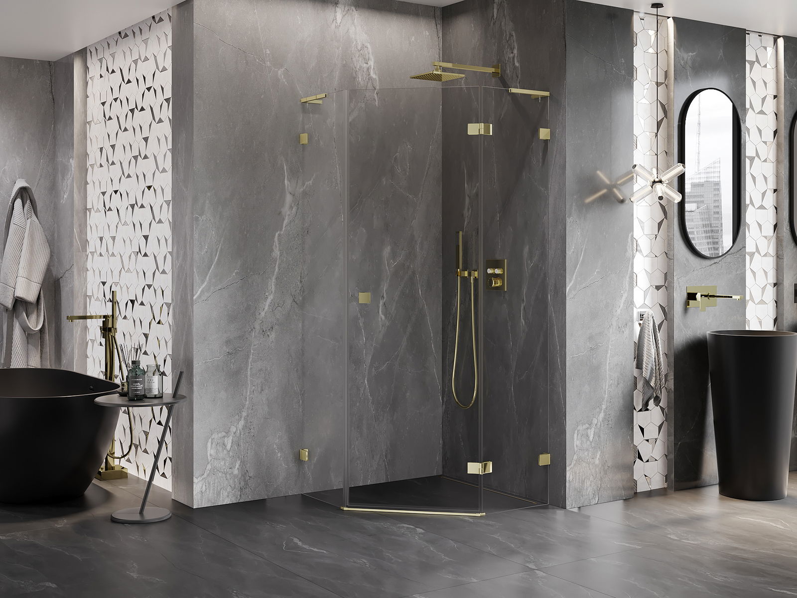 Mexen Lunar L pentagonal hinged shower enclosure right 90 x 90 cm, transparent, gold - 831L-090P-090L-50-00-P