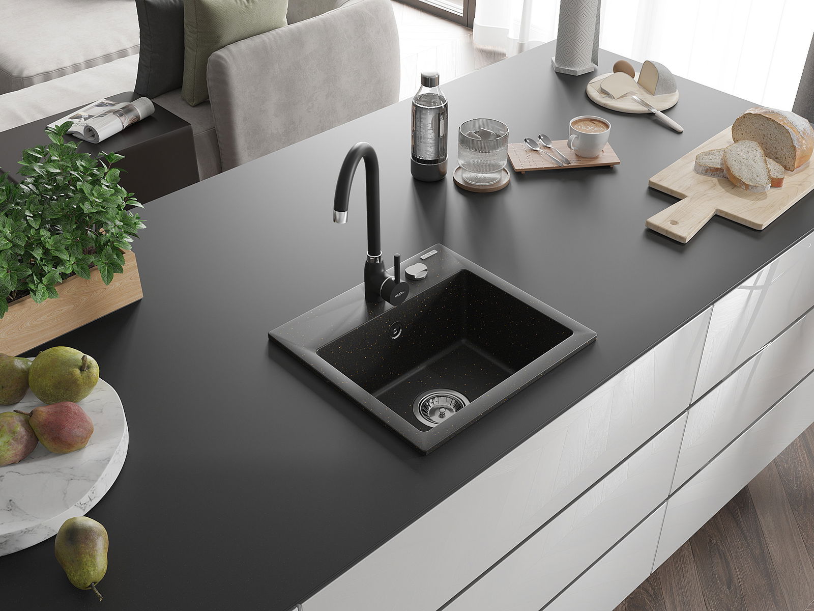 The sink is made of high quality granite. It is an elegant and, above all, practical complement to every kitchen, regardless of its style. High quality and granite durability ensure many years of use.