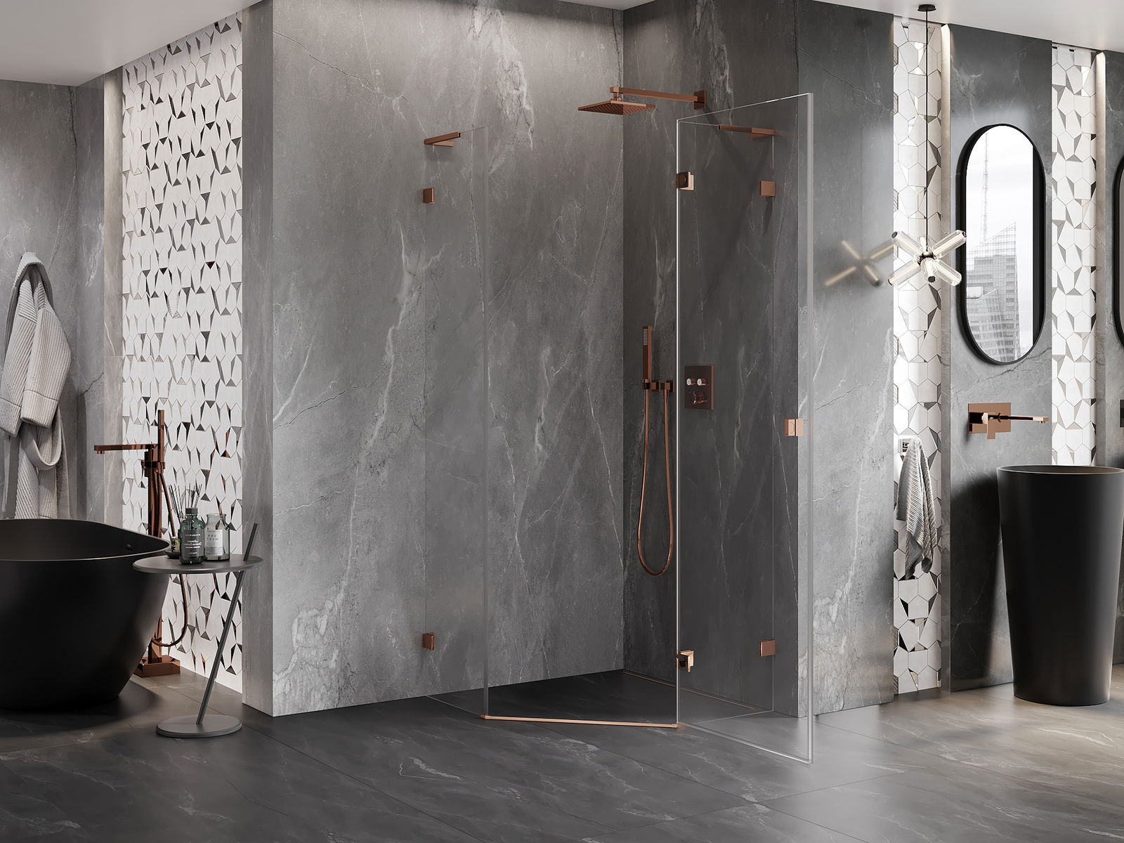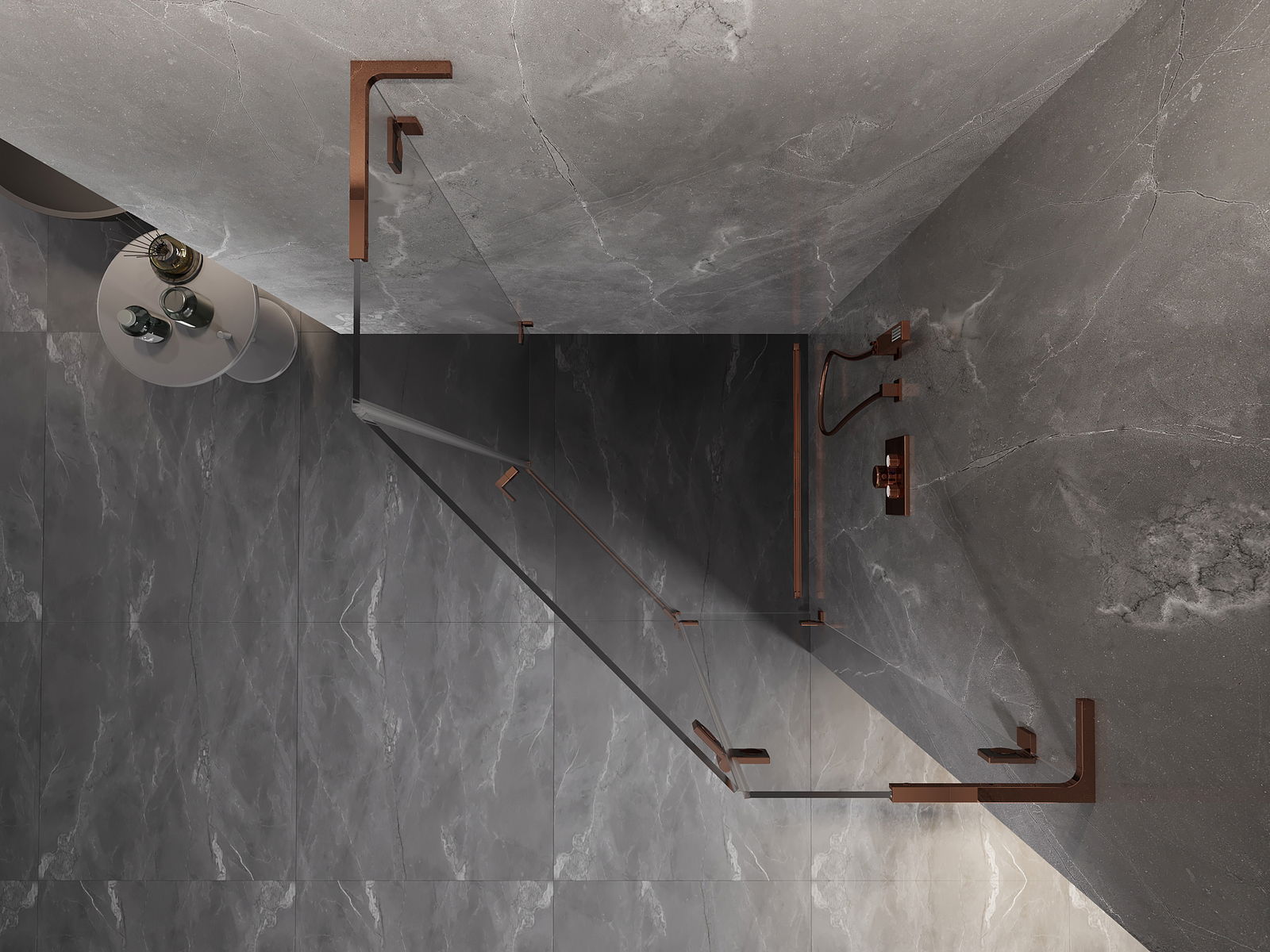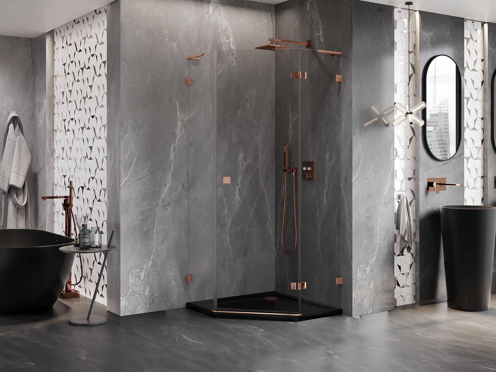Mexen Lunar L pentagonal right hinged shower cabin 90 x 90 cm, transparent, rose gold - 831L-090P-090L-60-00-P