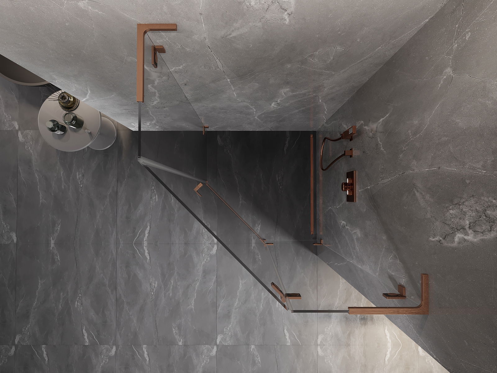 Mexen Lunar L pentagonal hinged right shower cabin 100x100 cm, transparent, brushed copper - 831L-100P-100L-65-00-P