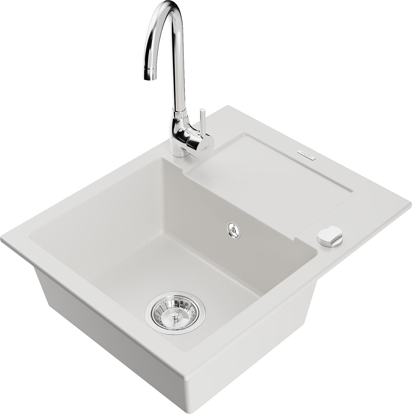 Mexen Enzo granite sink 1-bowl with drainer and Telma kitchen tap, white - 6506-20-670200-00