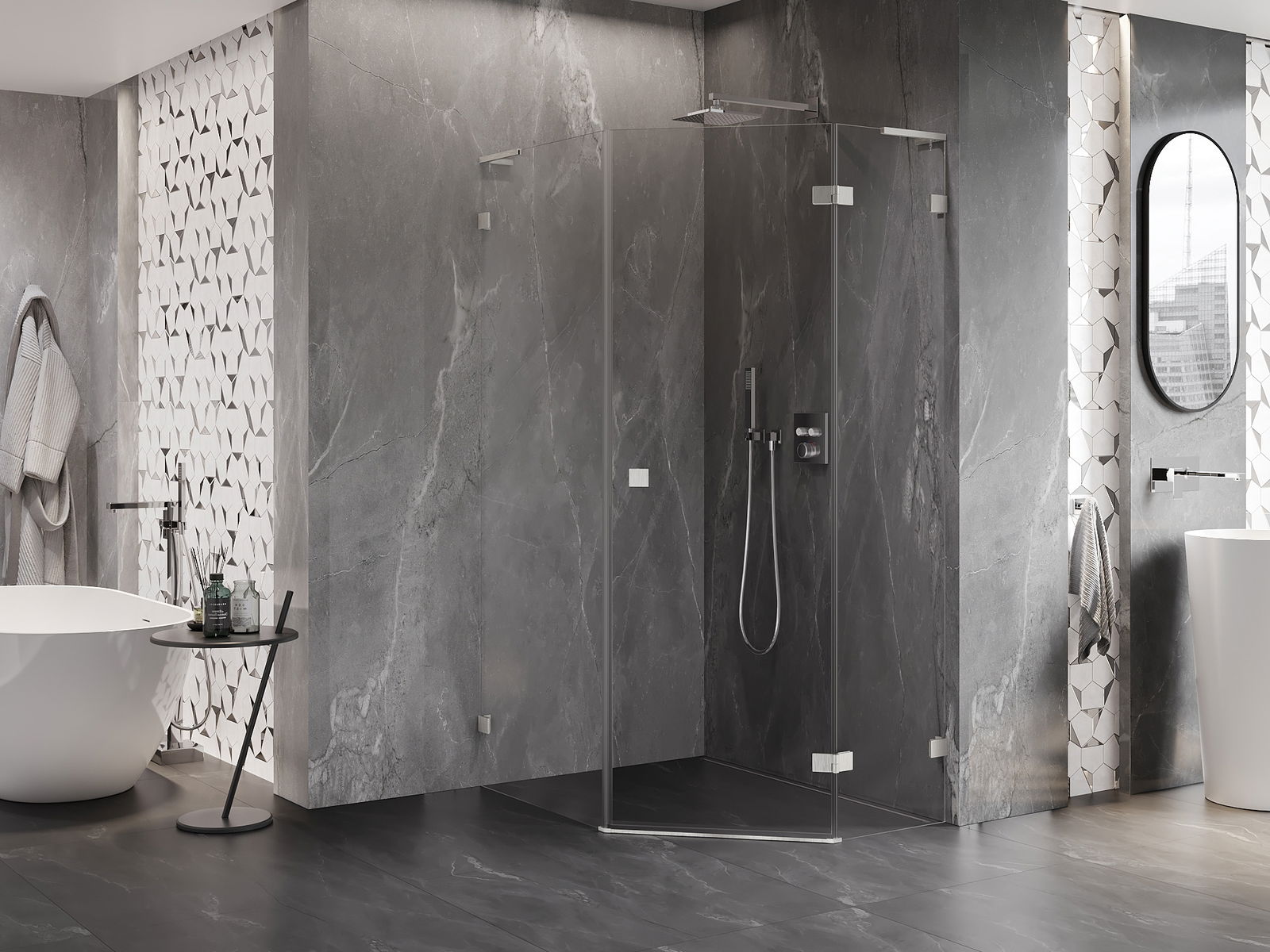 A handy and comfortable handle made from durable and resistant metal. Its trendy shape combined with a finish matched to the colour of the profiles gives the whole a modern and stylish look, highlighting the aesthetics of every bathroom.
