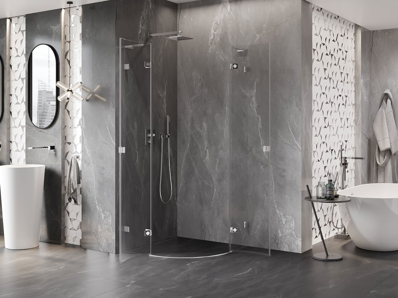 A handy and comfortable handle made from durable and resistant metal. Its trendy shape combined with a finish matched to the colour of the profiles gives the whole a modern and stylish look, highlighting the aesthetics of every bathroom.