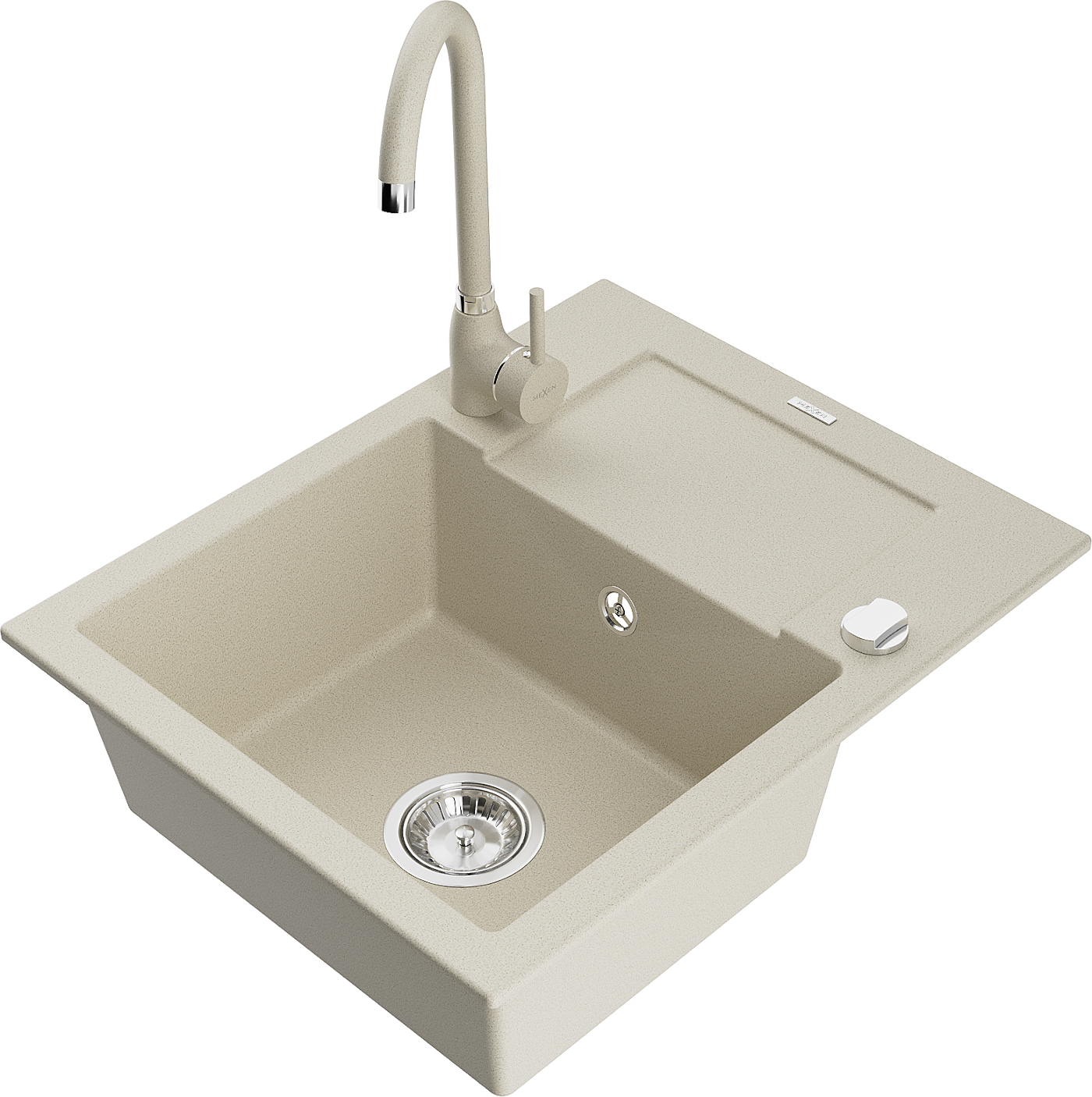 Mexen Enzo granite kitchen sink 1-bowl with drainer and Telma kitchen tap, beige - 6506-69-670200-69