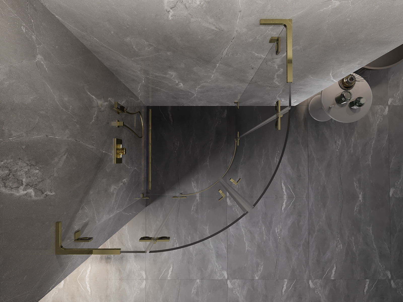 Mexen Lunar L semi-circular shower enclosure with hinged doors 80 x 80 cm, transparent, gold - 833L-080L-080P-50-00