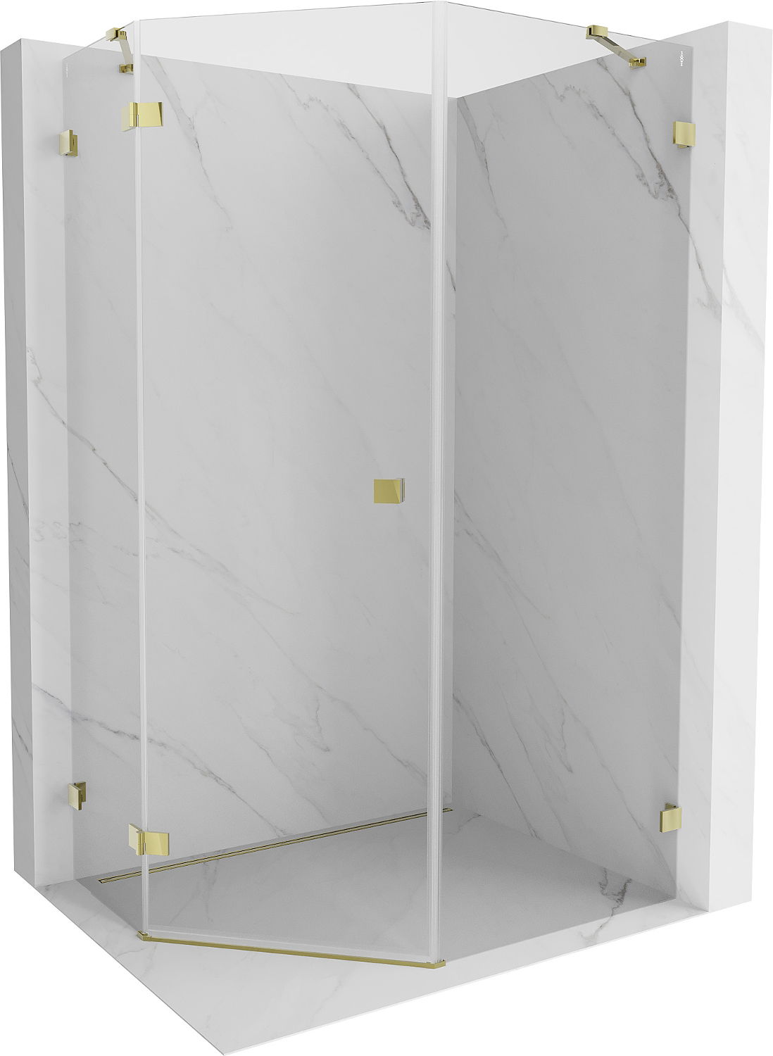 Mexen Lunar pentagonal left-hinged shower cabin 80 x 100 cm, transparent, gold - 831-080L-100P-50-00-L