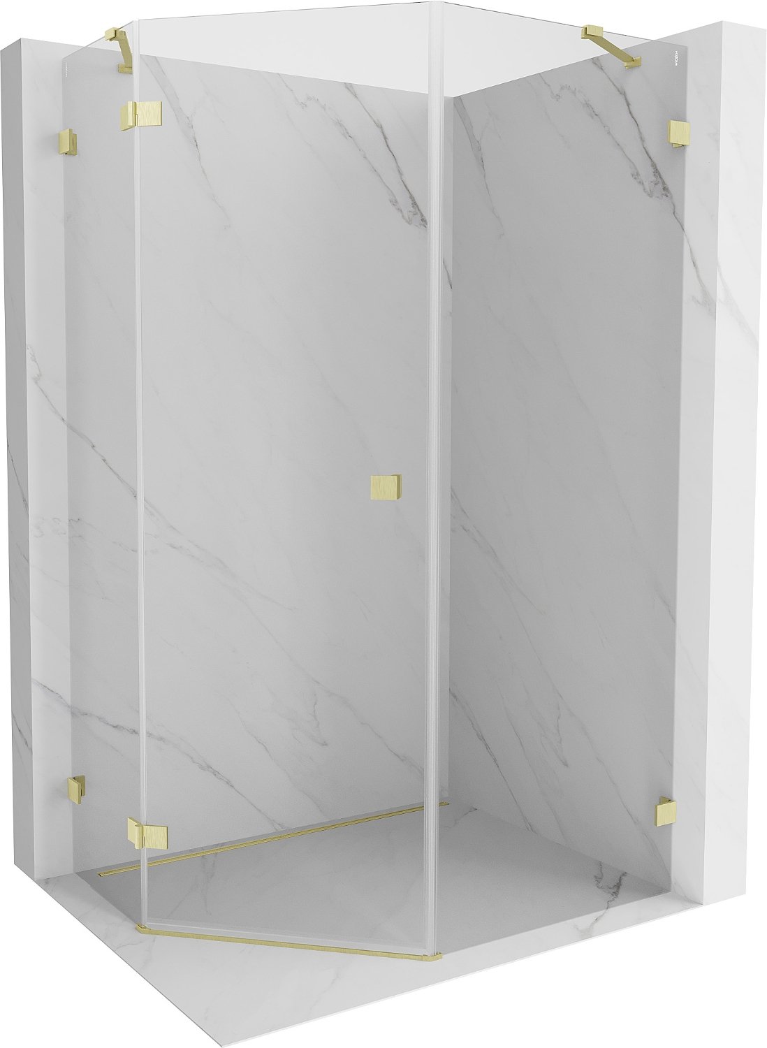 Mexen Lunar pentagonal shower enclosure swing left 80 x 90 cm, transparent, brushed gold - 831-080L-090P-55-00-L