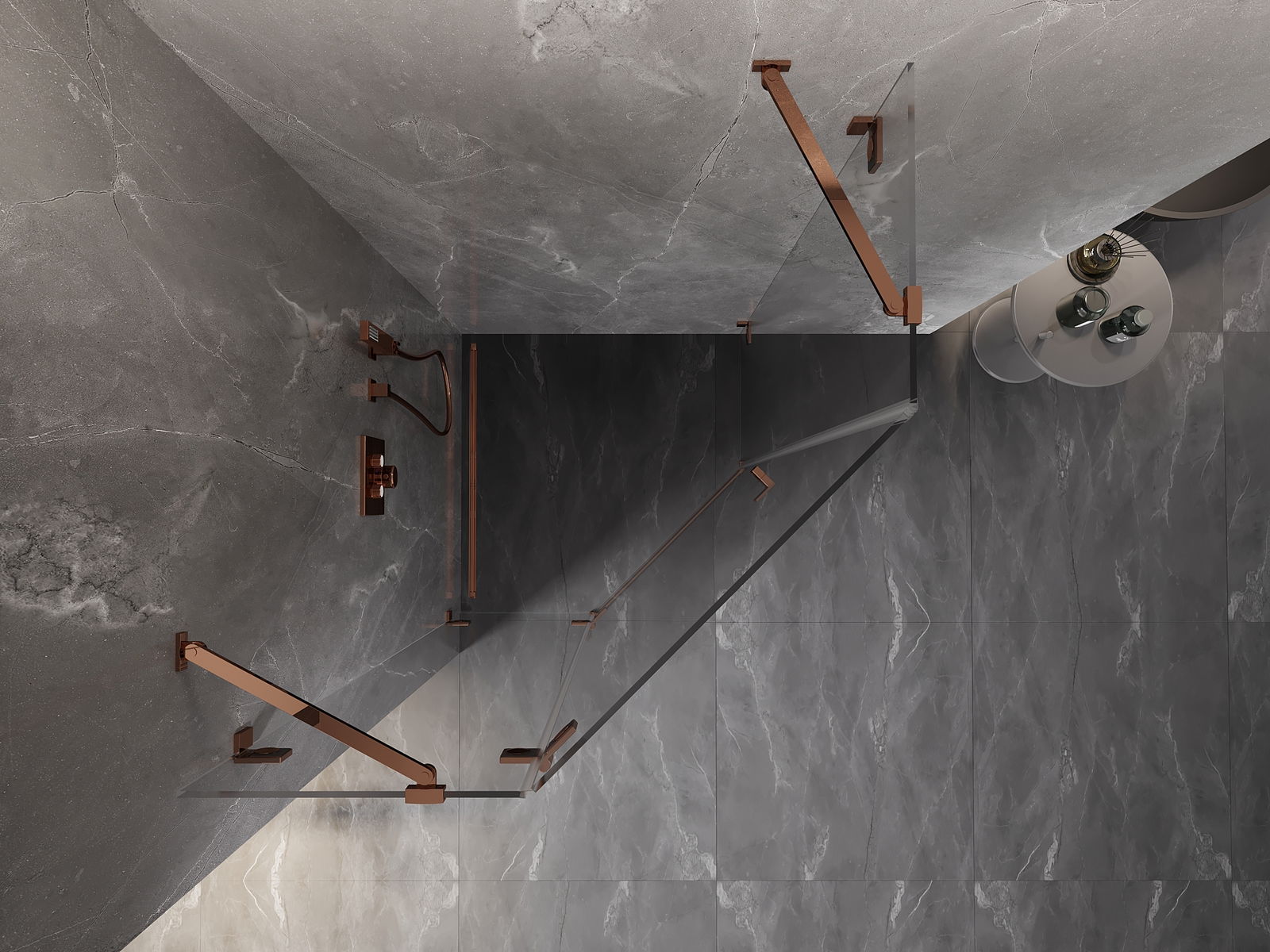 Mexen Lunar pentagonal left-hinged shower enclosure 100 x 100 cm, transparent, rose gold - 831-100L-100P-60-00-L