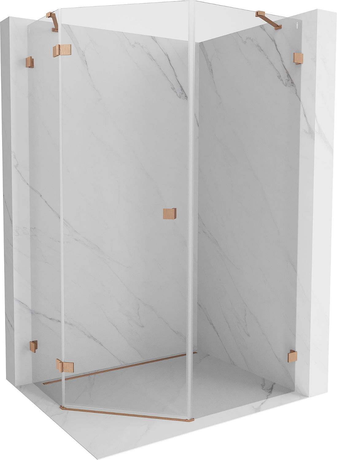 Mexen Lunar pentagonal left-hinged shower enclosure 80 x 100 cm, transparent, brushed copper - 831-080L-100P-65-00-L