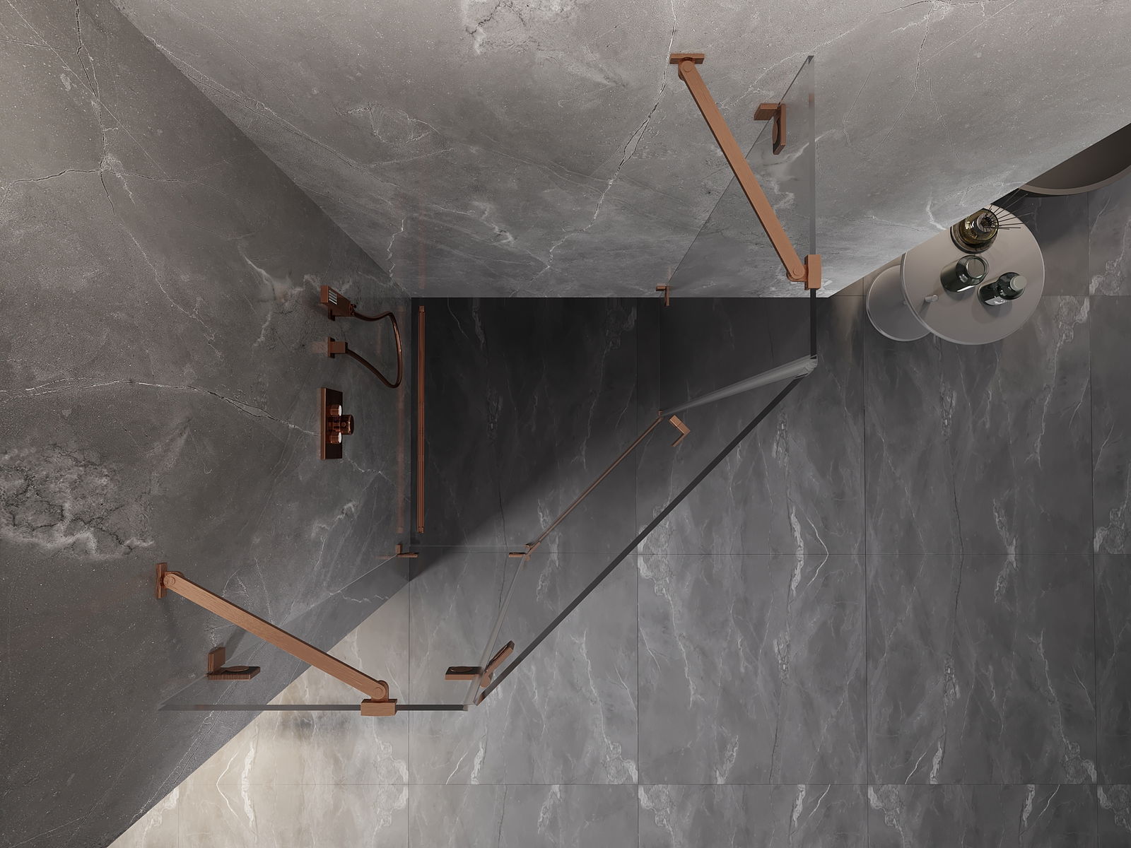 Mexen Lunar pentagonal shower enclosure left hinged 90 x 90 cm, transparent, brushed copper - 831-090L-090P-65-00-L