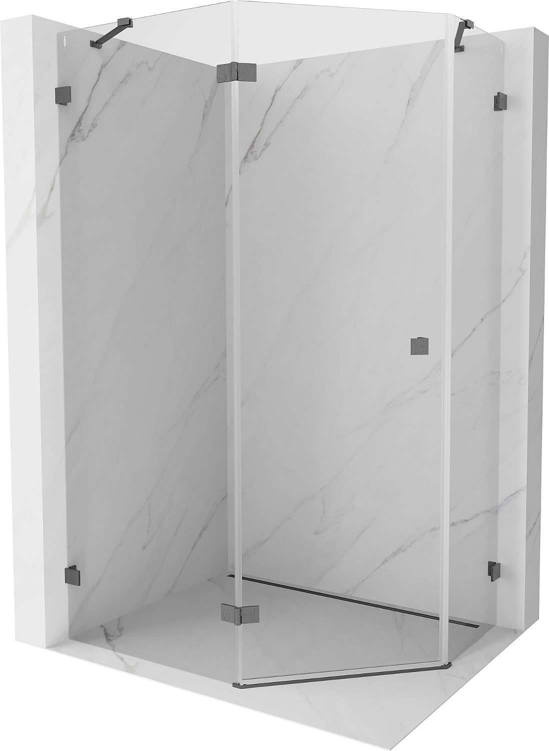 Mexen Lunar pentagonal hinged left shower enclosure 100 x 80 cm, transparent, brushed gun gray - 831-100L-080P-66-00-L