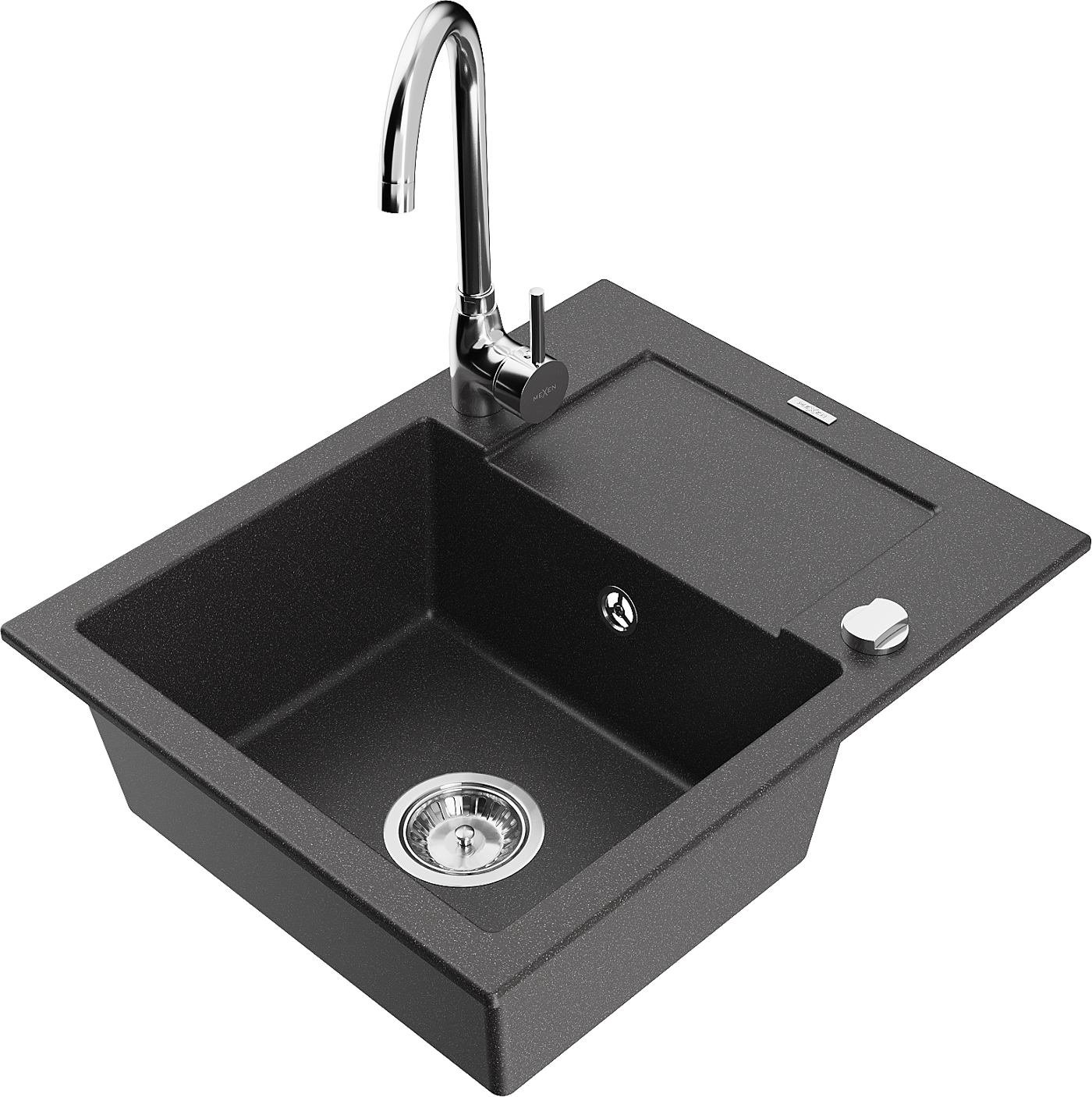 Mexen Enzo granite sink 1-bowl with drainer and Telma kitchen tap, black speckled - 6506-76-670200-00