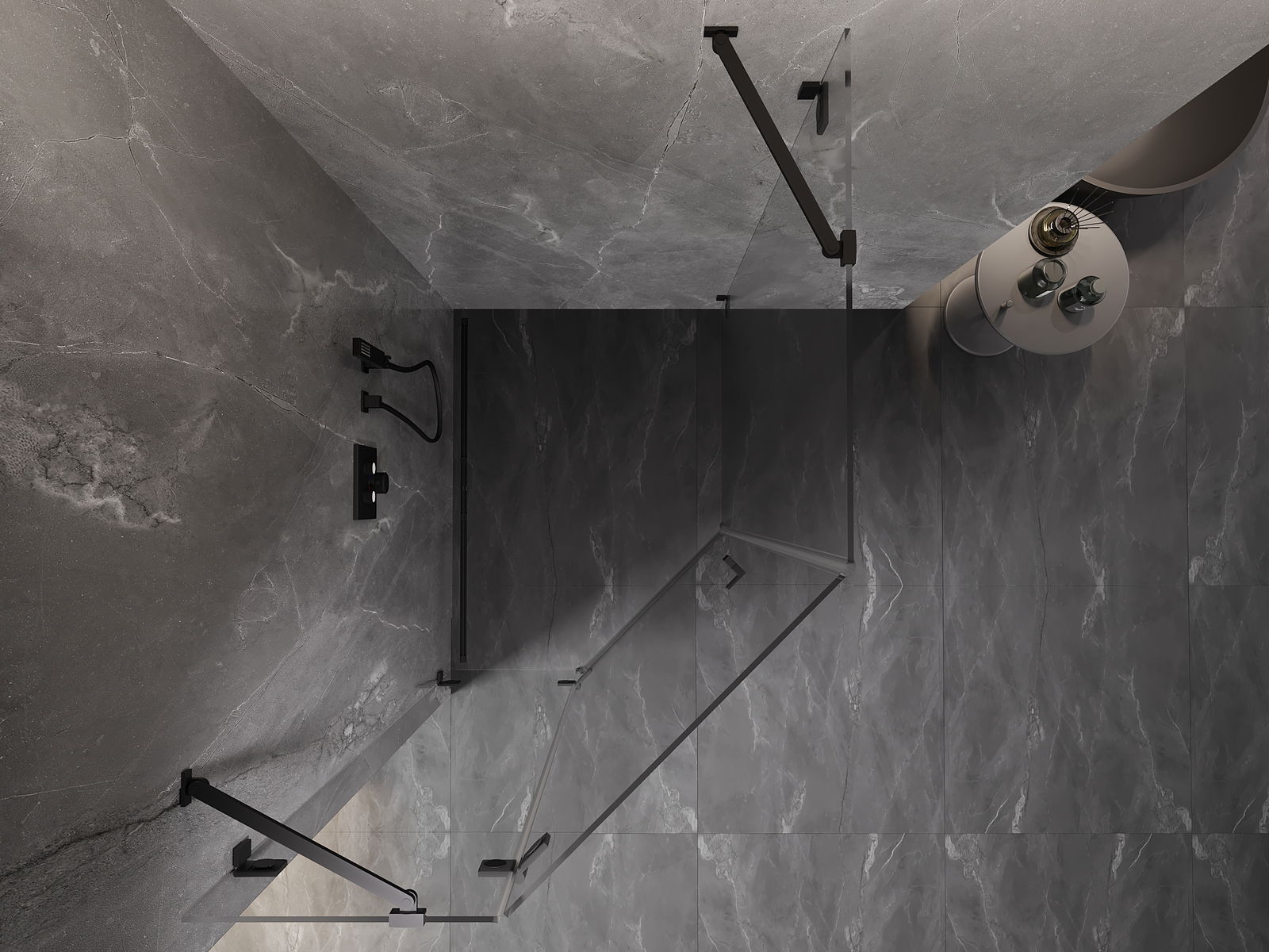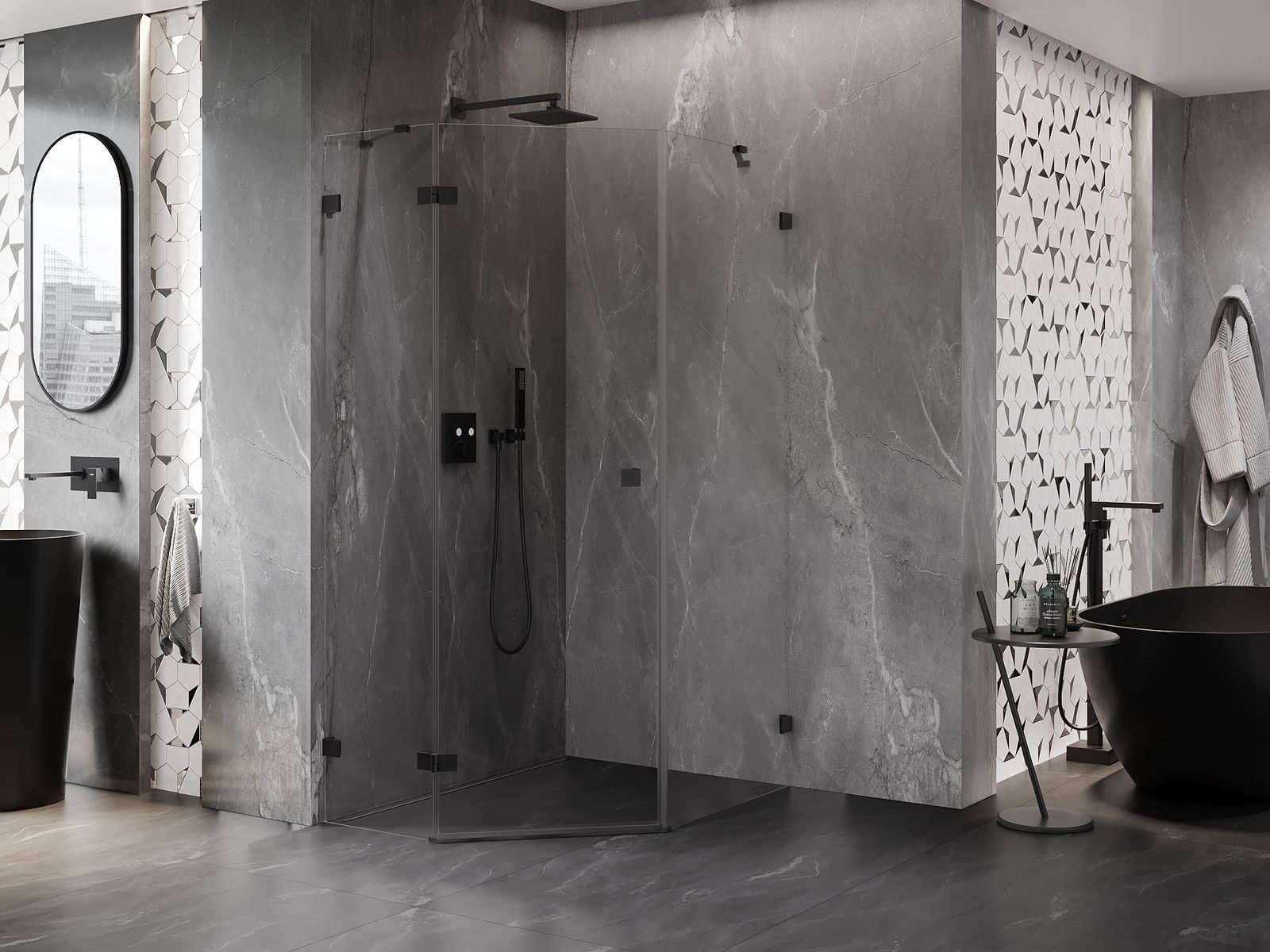 Mexen Lunar pentagonal shower enclosure, left hinged 80 x 90 cm, transparent, black - 831-080L-090P-70-00-L