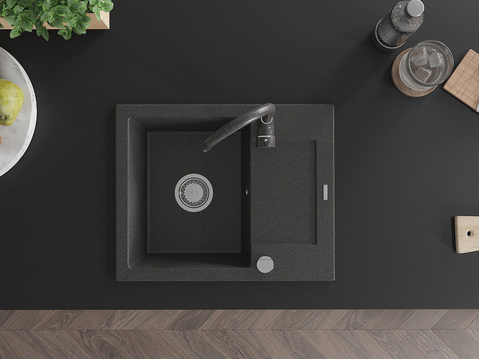 The sink is made of high quality granite. It is an elegant and, above all, practical complement to every kitchen, regardless of its style. High quality and granite durability ensure many years of use.