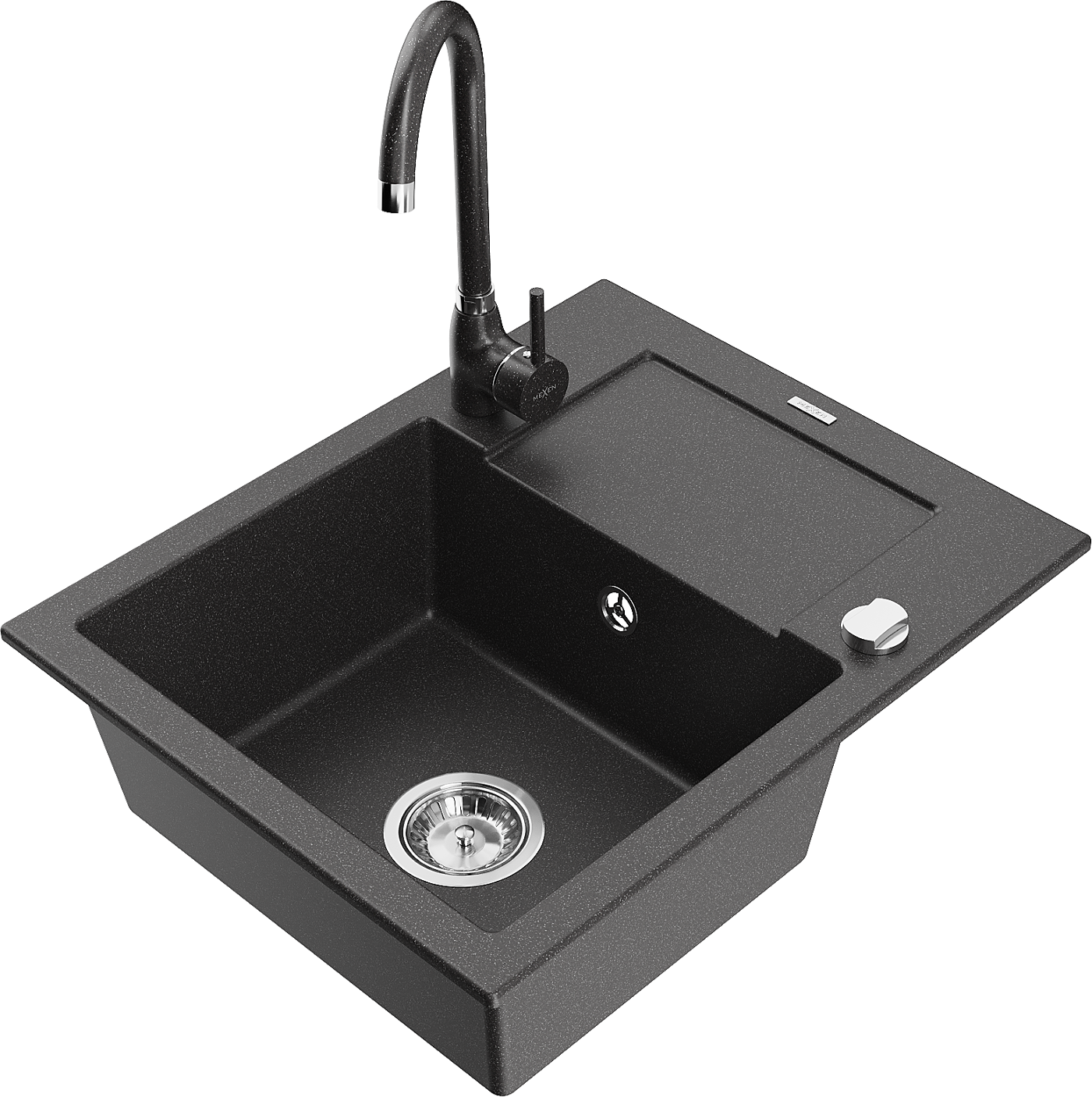 Mexen Enzo granite sink 1-bowl with drainer and Telma kitchen tap, black speckled - 6506-76-670200-76