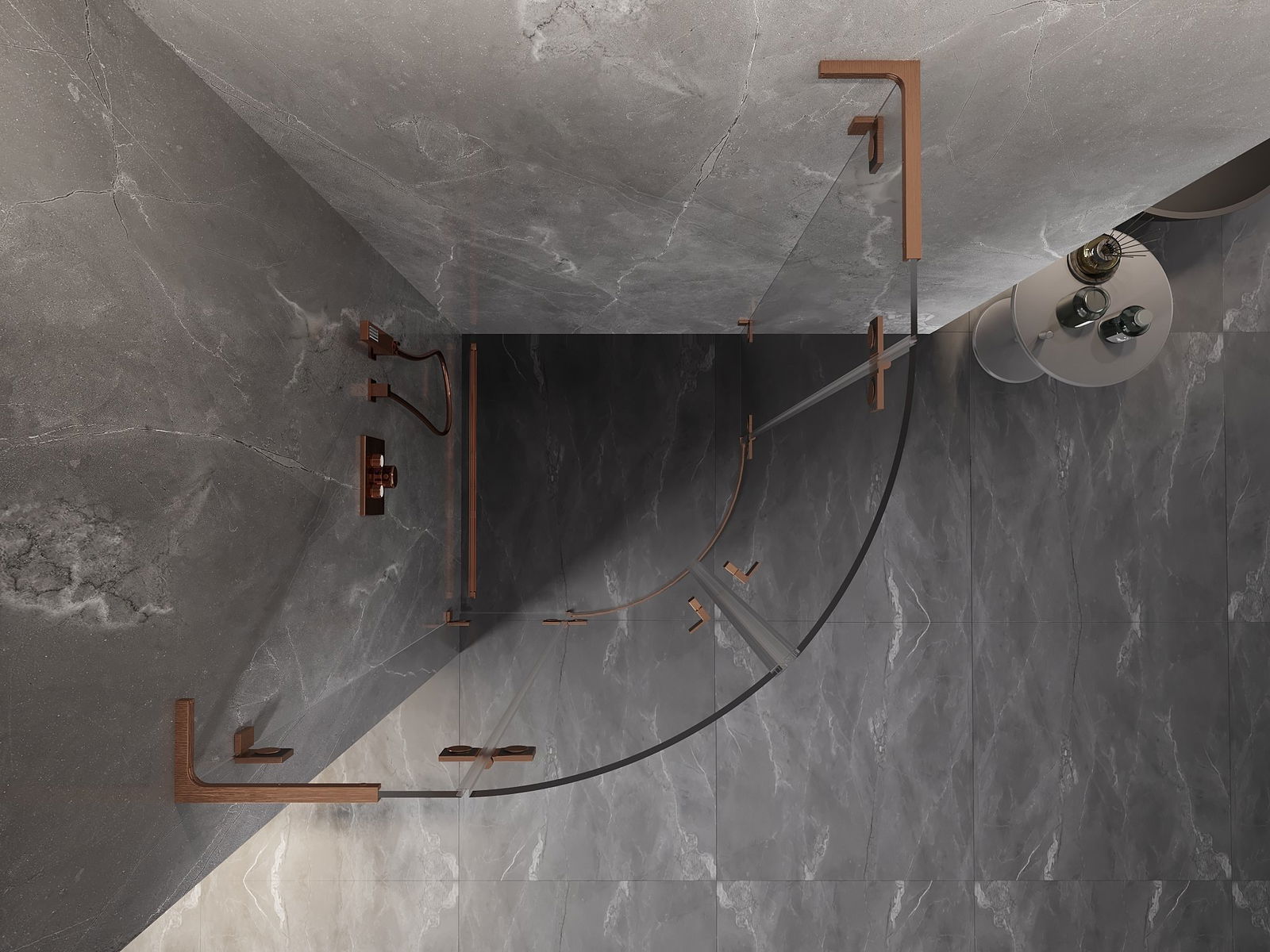Mexen Lunar L semi-circular pivot shower enclosure 80 x 80 cm, transparent, brushed copper - 833L-080L-080P-65-00