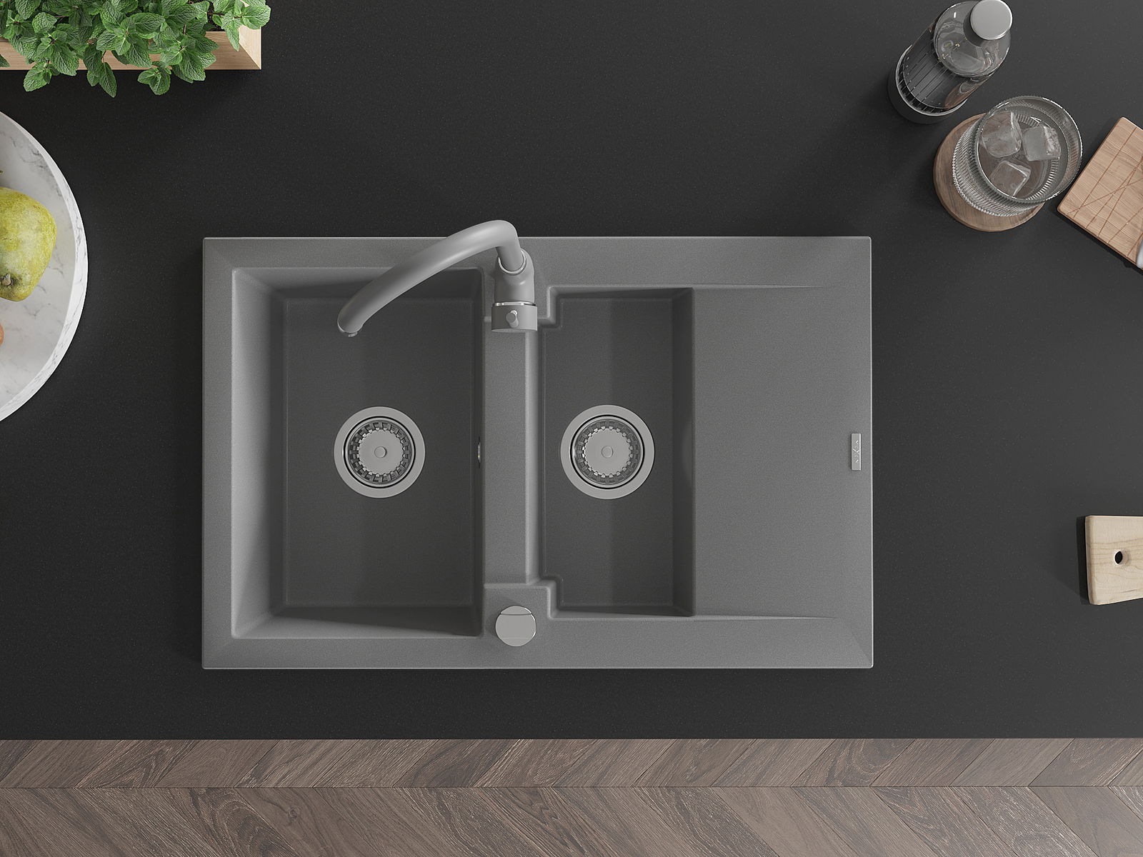 The sink is made of high quality granite. It is an elegant and, above all, practical complement to every kitchen, regardless of its style. High quality and granite durability ensure many years of use.