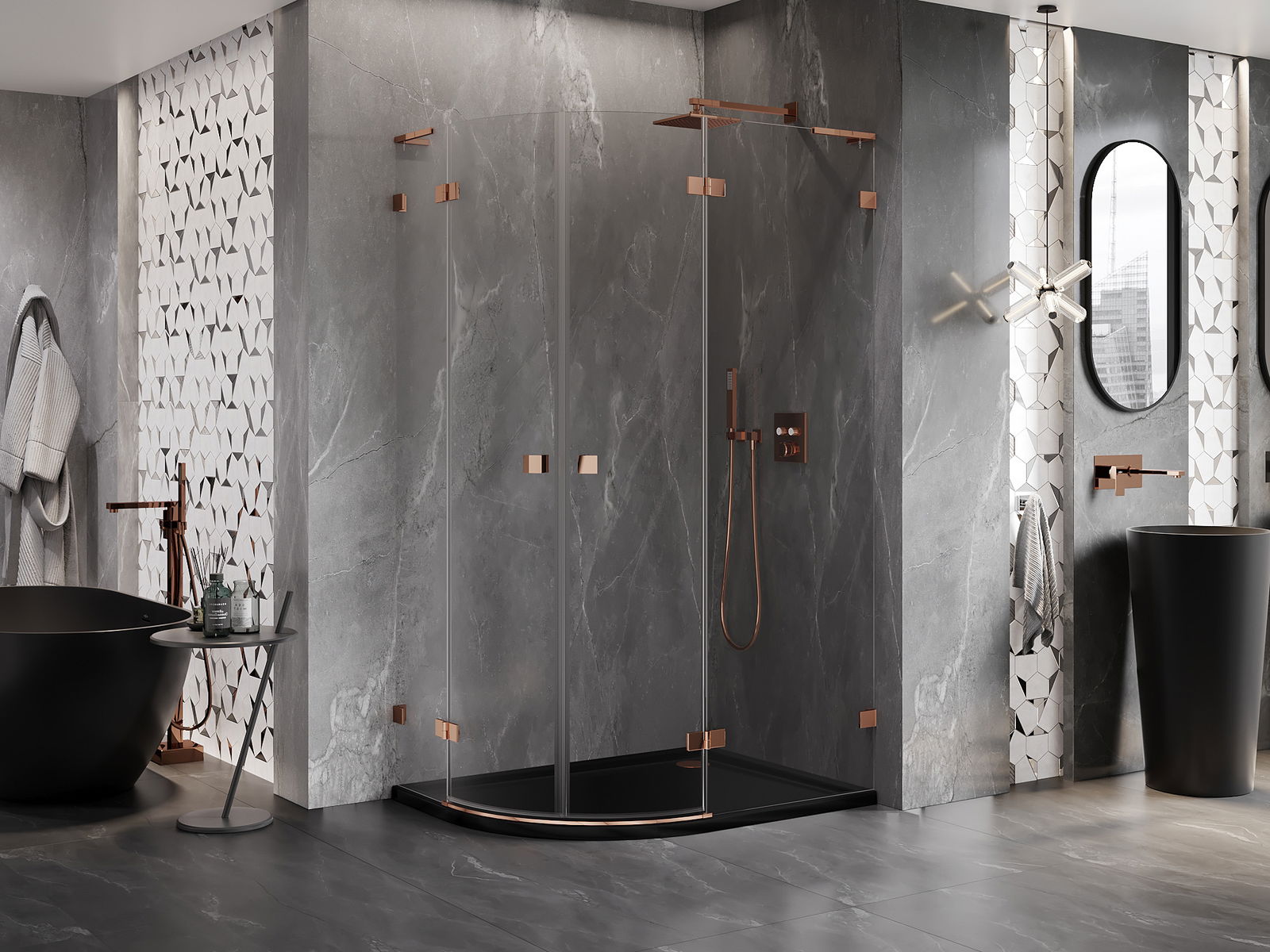 Mexen Lunar L semi-circular right opening shower cabin 80 x 70 cm, transparent, pink gold - 833L-080P-070L-60-00