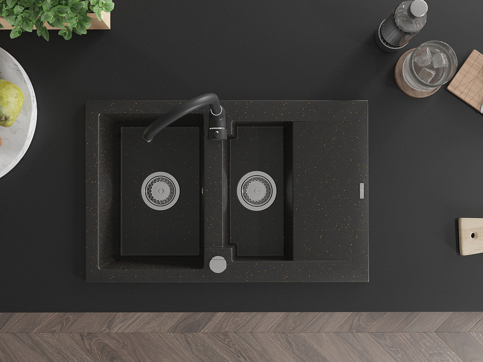 The sink is made of high quality granite. It is an elegant and, above all, practical complement to every kitchen, regardless of its style. High quality and granite durability ensure many years of use.