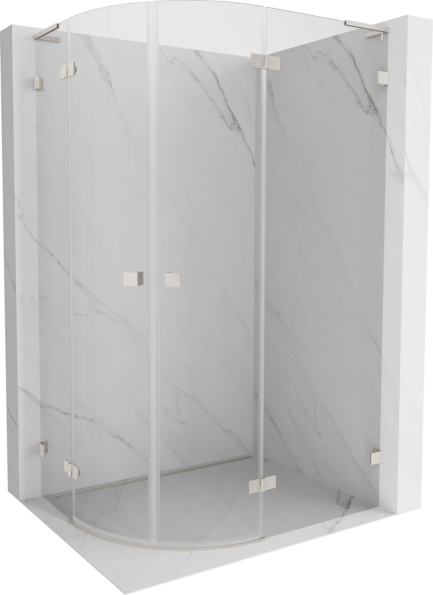 Mexen Lunar L semi-circular shower enclosure right-hinged 90 x 70 cm, transparent, brushed nickel - 833L-090P-070L-97-00