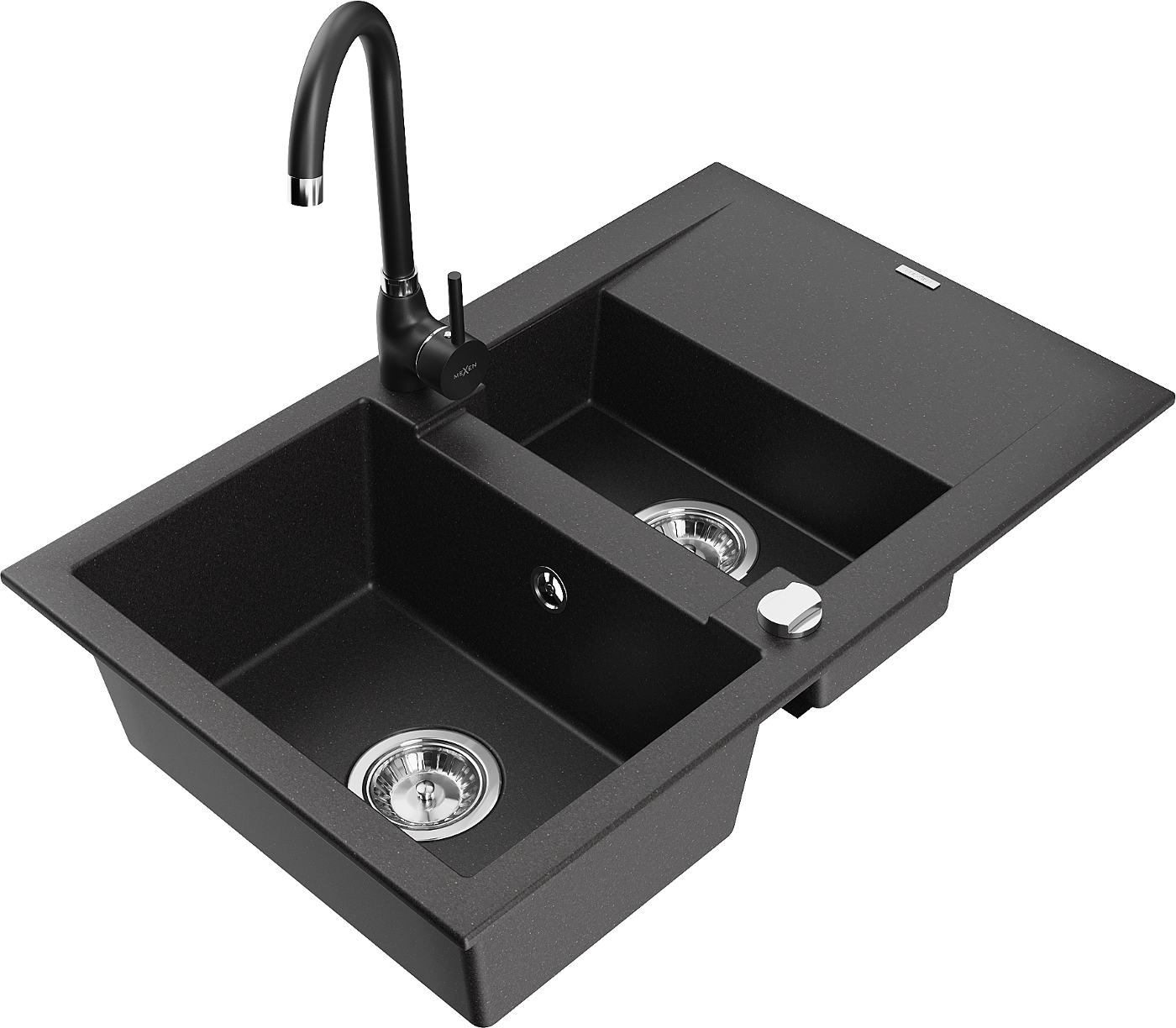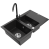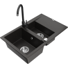 Mexen Gaspar granite kitchen sink 1.5-bowl with drainer and Telma kitchen tap, black - 6507-77-670200-70