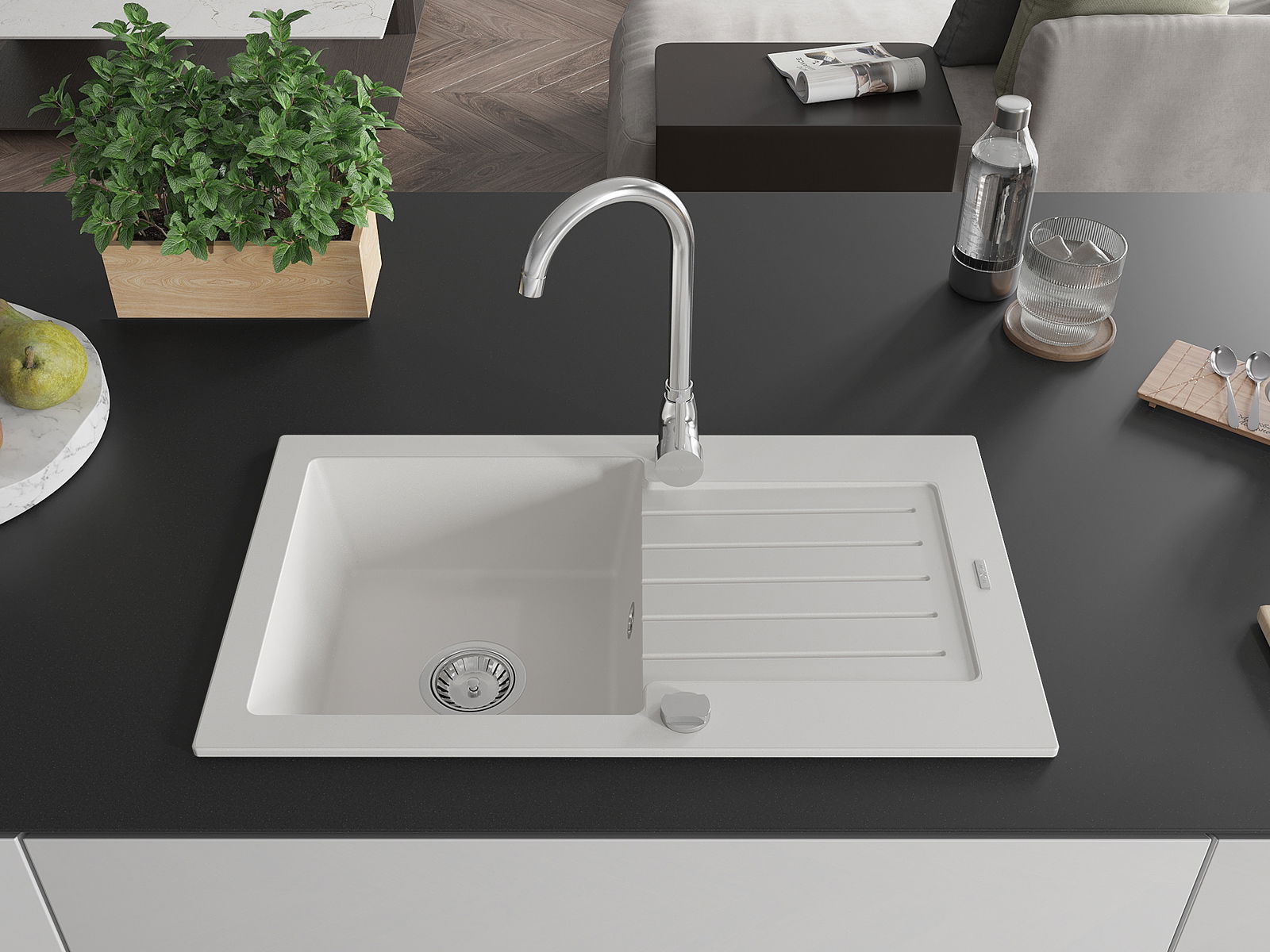 The surface of the sink is resistant to stains and discoloration, thanks to which it is easy to clean and retains its color for a long time. Aesthetic and practically complementing every kitchen.