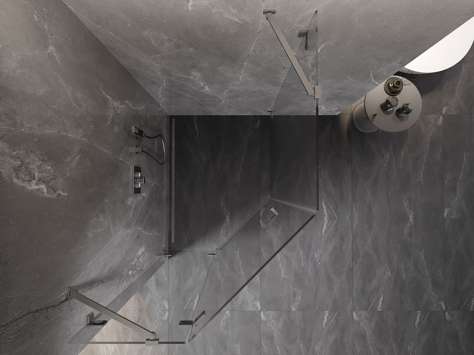 Mexen Lunar pentagonal shower enclosure with left side hinge 80 x 90 cm, transparent, brushed nickel - 831-080L-090P-97-00-L