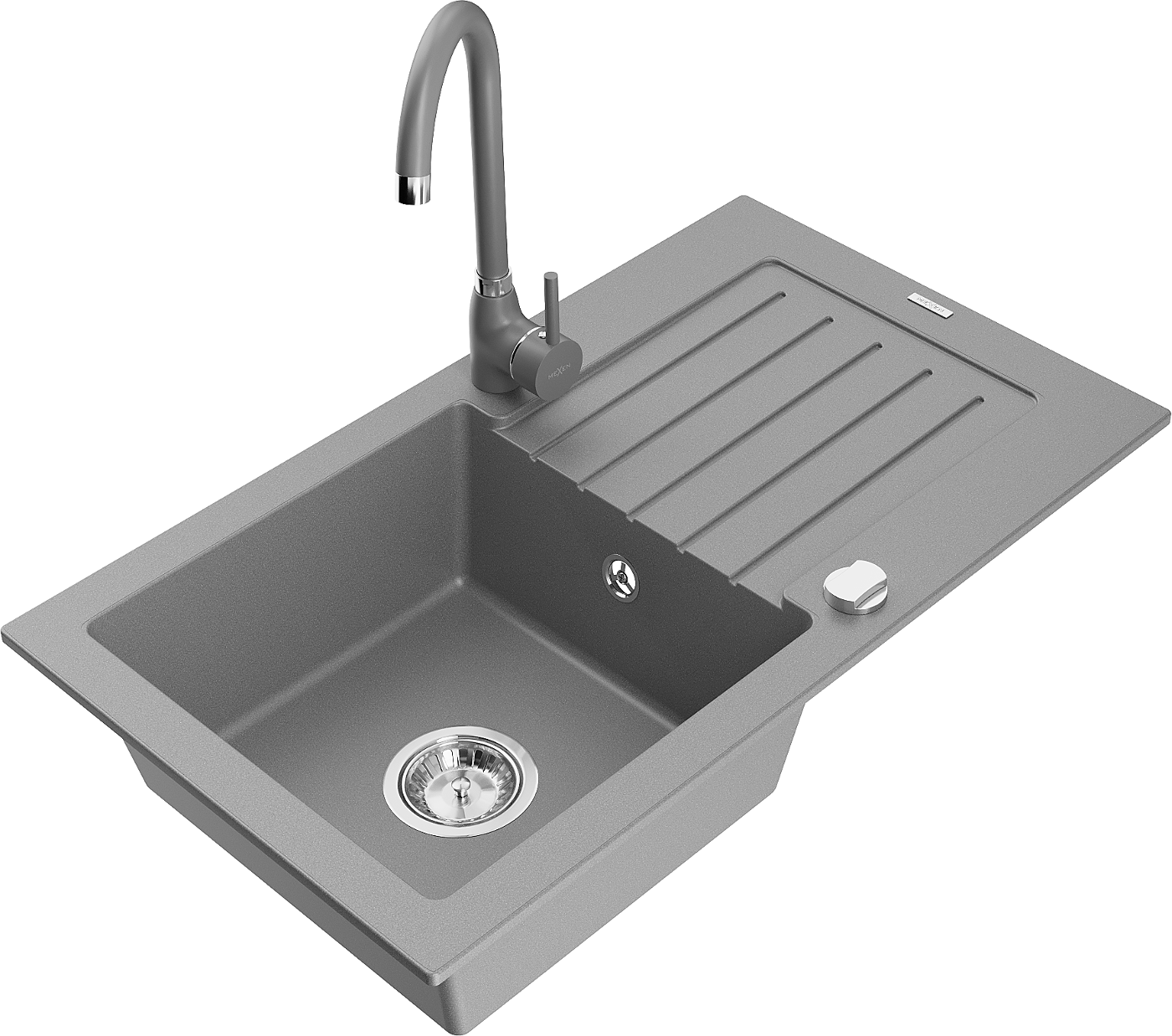 Mexen Pablo granite sink 1-bowl with drainer and Telma kitchen tap, grey - 6510-71-670200-71