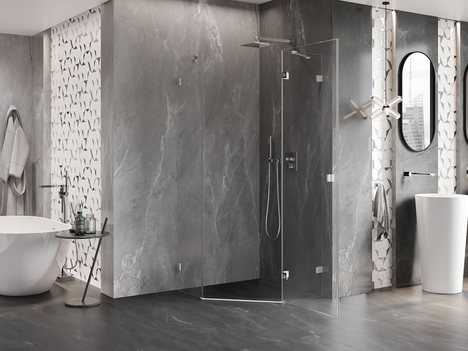 A handy and comfortable handle made from durable and resistant metal. Its trendy shape combined with a finish matched to the colour of the profiles gives the whole a modern and stylish look, highlighting the aesthetics of every bathroom.