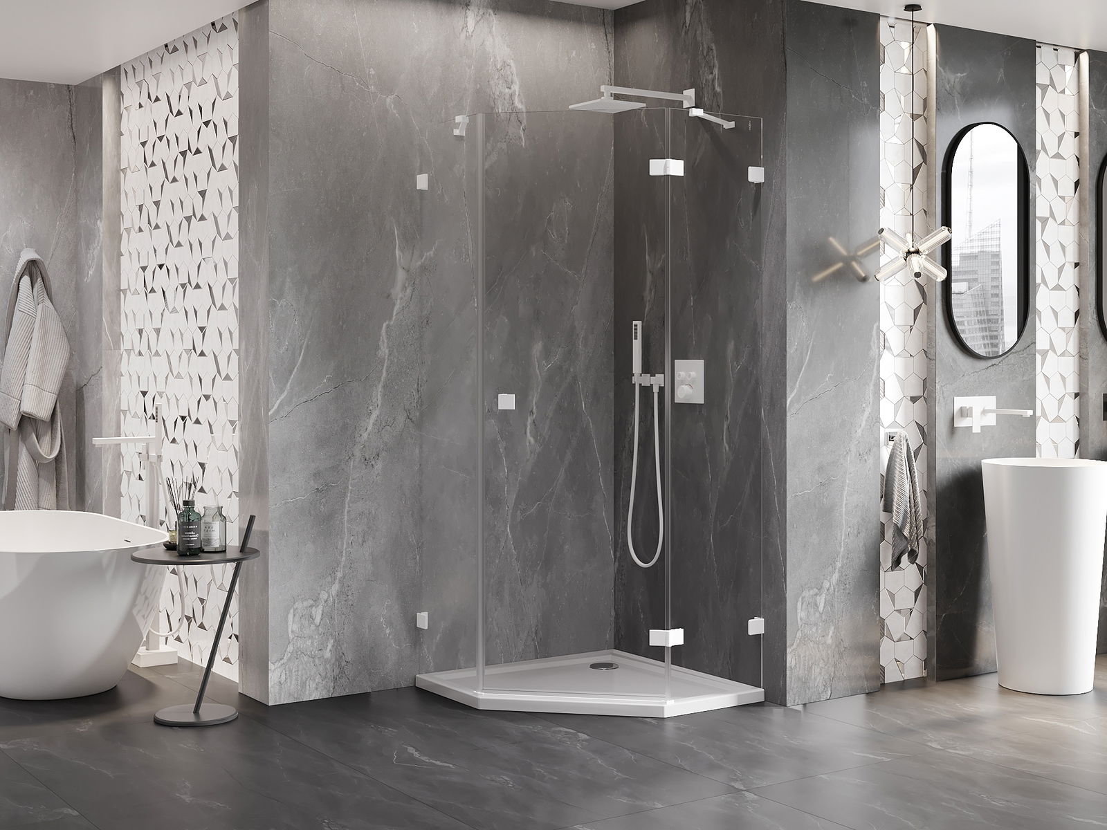 Mexen Lunar pentagonal hinged right-hand shower cabin 100 x 100 cm, transparent, white - 831-100P-100L-20-00-P