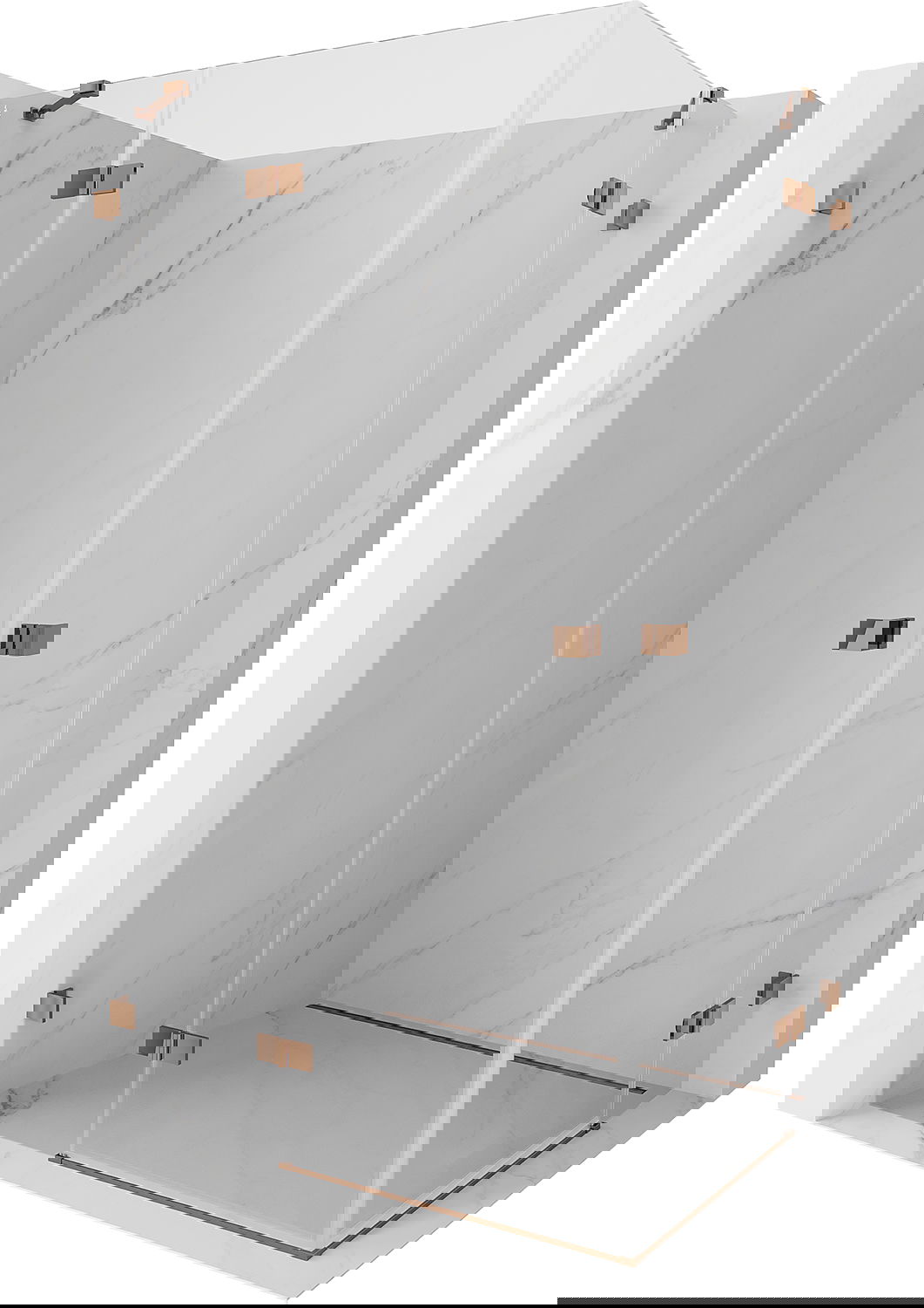 Clamps and hinges are made from very durable brass, additionally creating a flush glass surface. This is an excellent choice that combines elegance, durability, and modern design. Such solutions enhance the aesthetic of the shower while also making it easier to maintain cleanliness.