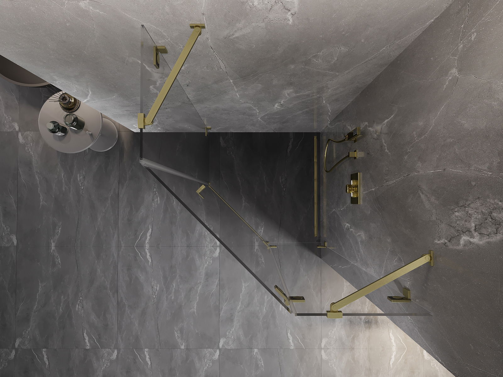 Mexen Lunar pentagonal shower enclosure hinged right 80 x 80 cm, transparent, brushed gold - 831-080P-080L-55-00-P