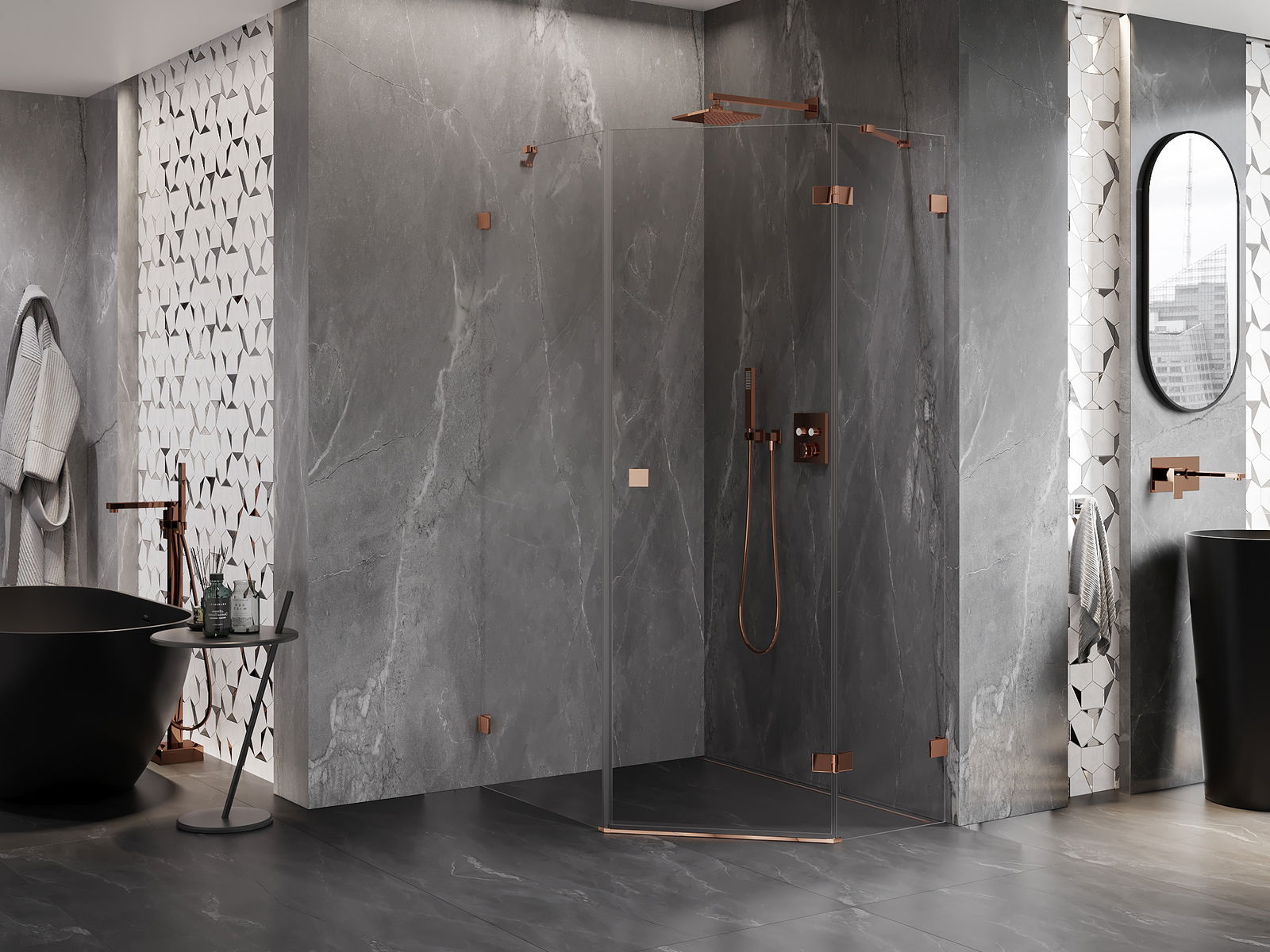 Mexen Lunar five-sided right hinged shower enclosure 80 x 90 cm, transparent, rose gold - 831-080P-090L-60-00-P