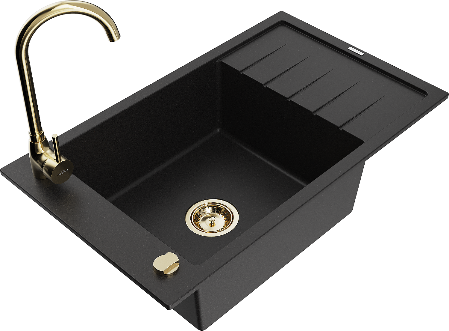 Mexen Elias granite sink 1-bowl with drainer and Telma kitchen tap, black - 6511-77-670200-50