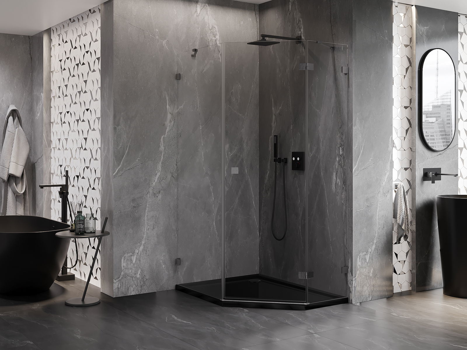Mexen Lunar Pentagonal Shower Enclosure Right Hinged 90 x 100 cm, Transparent, Brushed Gun Gray - 831-090P-100L-66-00-P