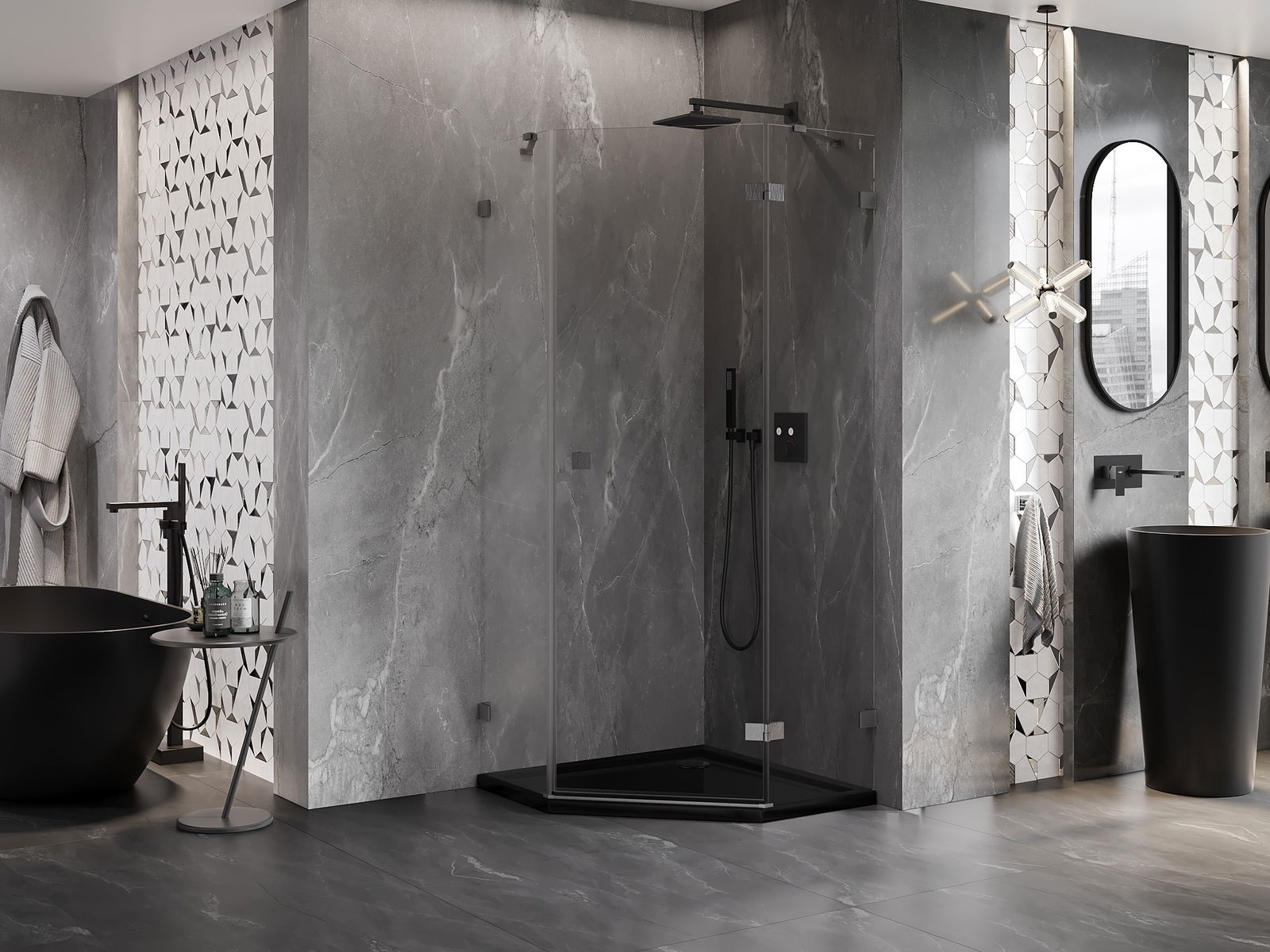 Mexen Lunar pentagonal right-hinged shower cabin 100 x 100 cm transparent, brushed gun gray - 831-100P-100L-66-00-P