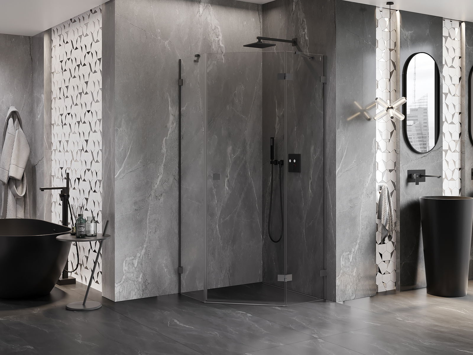 Mexen Lunar pentagonal hinged right shower enclosure 100 x 100 cm, transparent, gun metal - 831-100P-100L-95-00-P