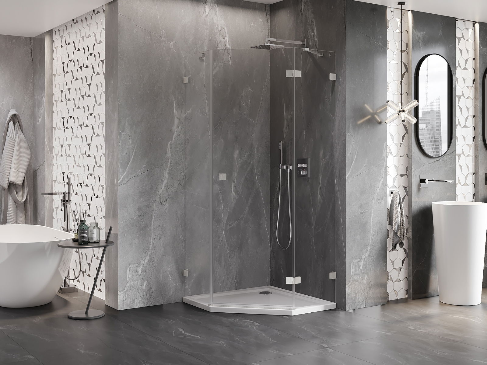A handy and comfortable handle made from durable and resistant metal. Its trendy shape combined with a finish matched to the colour of the profiles gives the whole a modern and stylish look, highlighting the aesthetics of every bathroom.