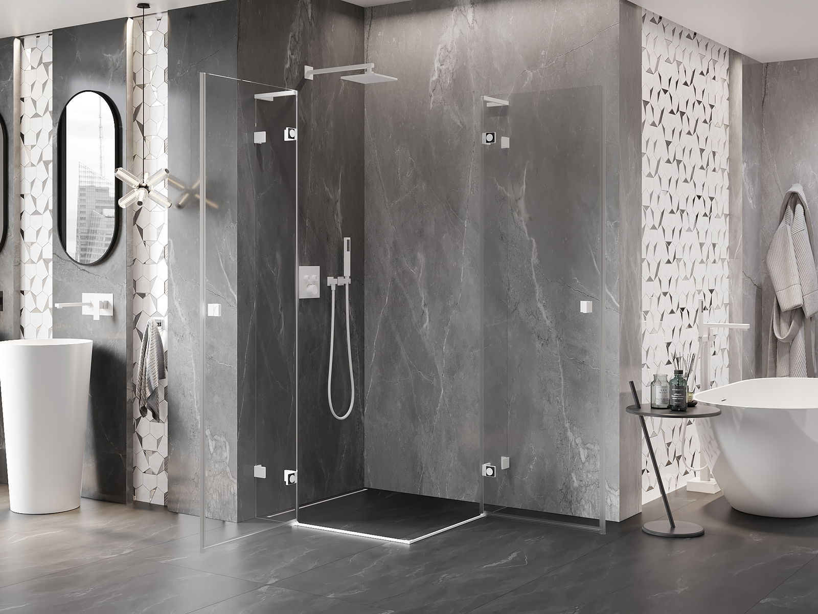 Clamps and hinges are made from very durable brass, additionally creating a flush glass surface. This is an excellent choice that combines elegance, durability, and modern design. Such solutions enhance the aesthetic of the shower while also making it easier to maintain cleanliness.