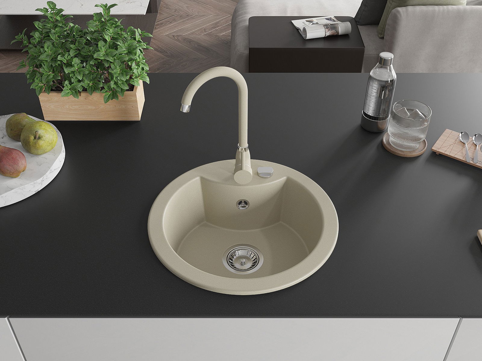The sink is made of high quality granite. It is an elegant and, above all, practical complement to every kitchen, regardless of its style. High quality and granite durability ensure many years of use.