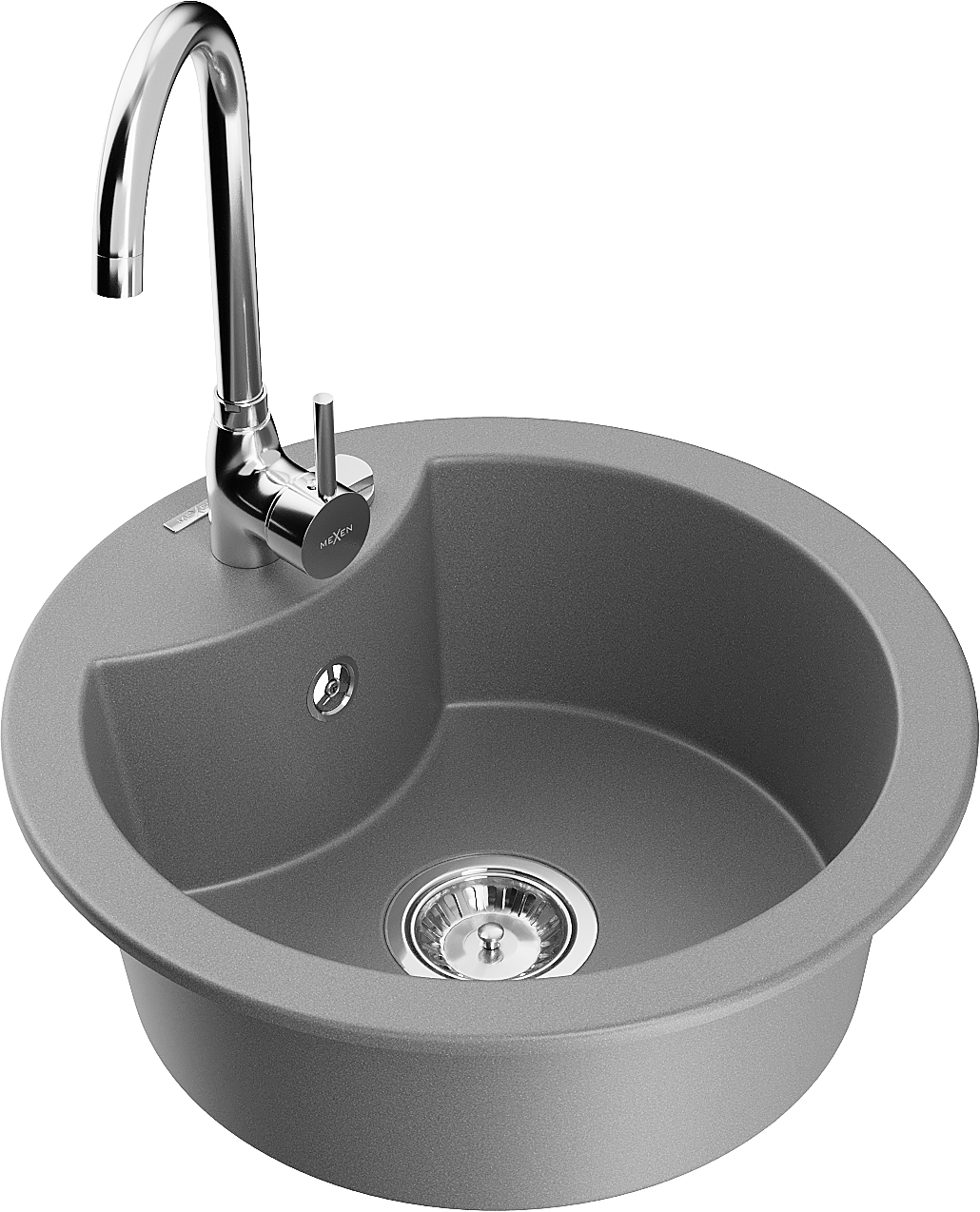 Mexen Diego single-bowl granite sink with Telma kitchen tap, grey - 6512-71-670200-00